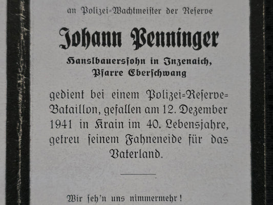 Sterbebild Polizei-Wachtmeister Eberschwang Polizei Res. Btl. Laak Kärnten Krain Slowenien