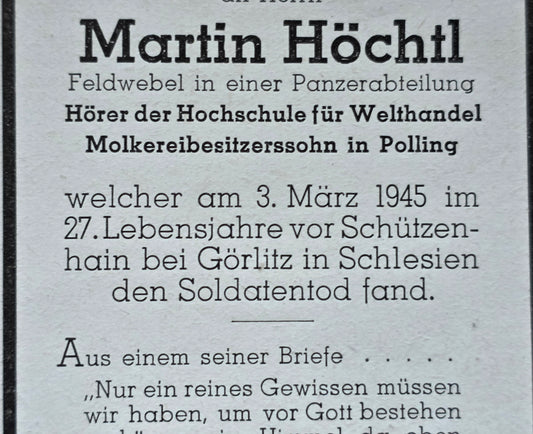 Sterbebild Feldwebel Polling Panzer Regt. Endkampf Schützenhain Görlitz Schlesien