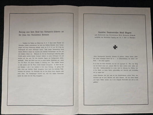 Sterbebild Groß Trauerbrief A4 NSDAP-Kreisleiter Unteroffizier Gießen 16. Gren. Regt. 98 Jazow Stary Ukraine