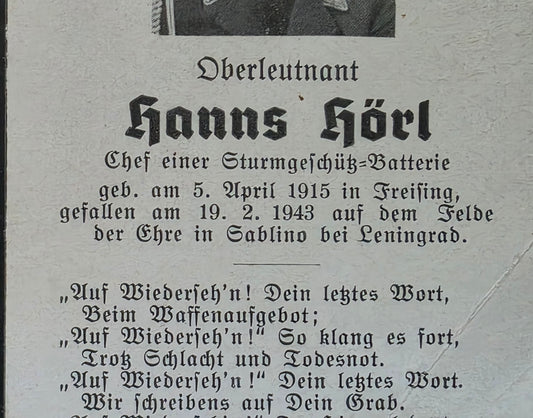 Sterbebild Oberleutnant Freising Sturmgeschütz-Batterie 19. Batterie Art. Regt. 10 (Mot) Leningrad Russland