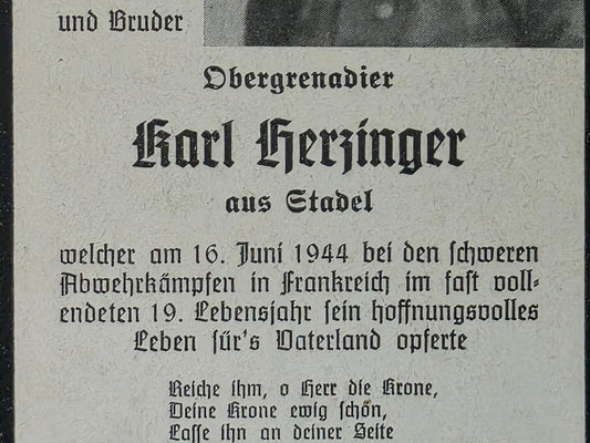 Sterbebild Obergrenadier Gehersberg Normandie Cherbourg-Peninsula Orglandes Frankreich