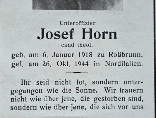 Sterbebild Brüder Roßbrunn Unteroffizier Art. Regt 356 Ronco Italien
