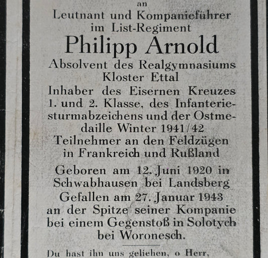 Sterbebild Leutnant Schwabhausen 12. Gren. Regt. 199 "List" Solotych Russland