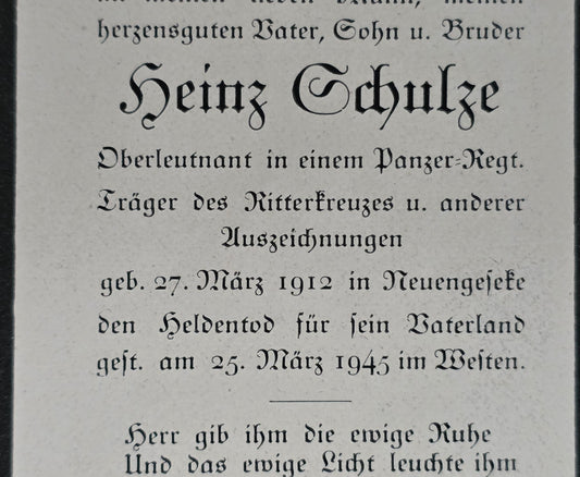 Sterbebild Oberleutnant Neuengeseke 2. Komp. Panzer-Abt. 116 "Windhund" Ritterkreuzträger Endkampf Westen