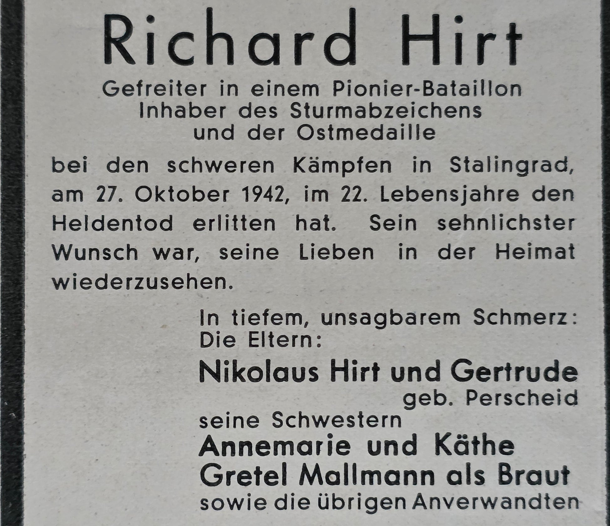Gefallen am 27.10.1942 in Stalingrad (Russland)