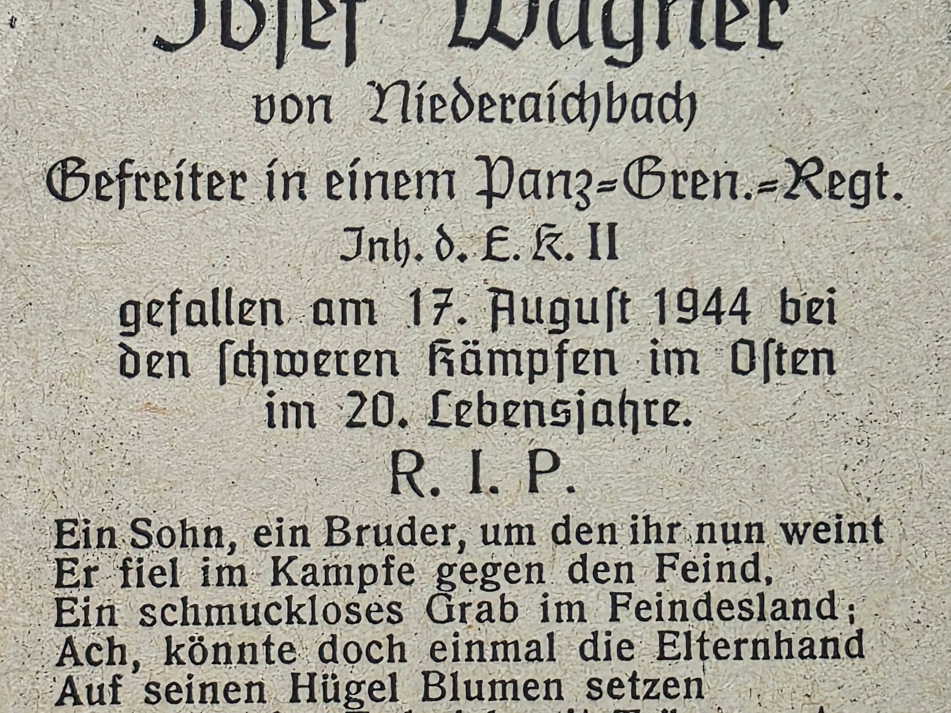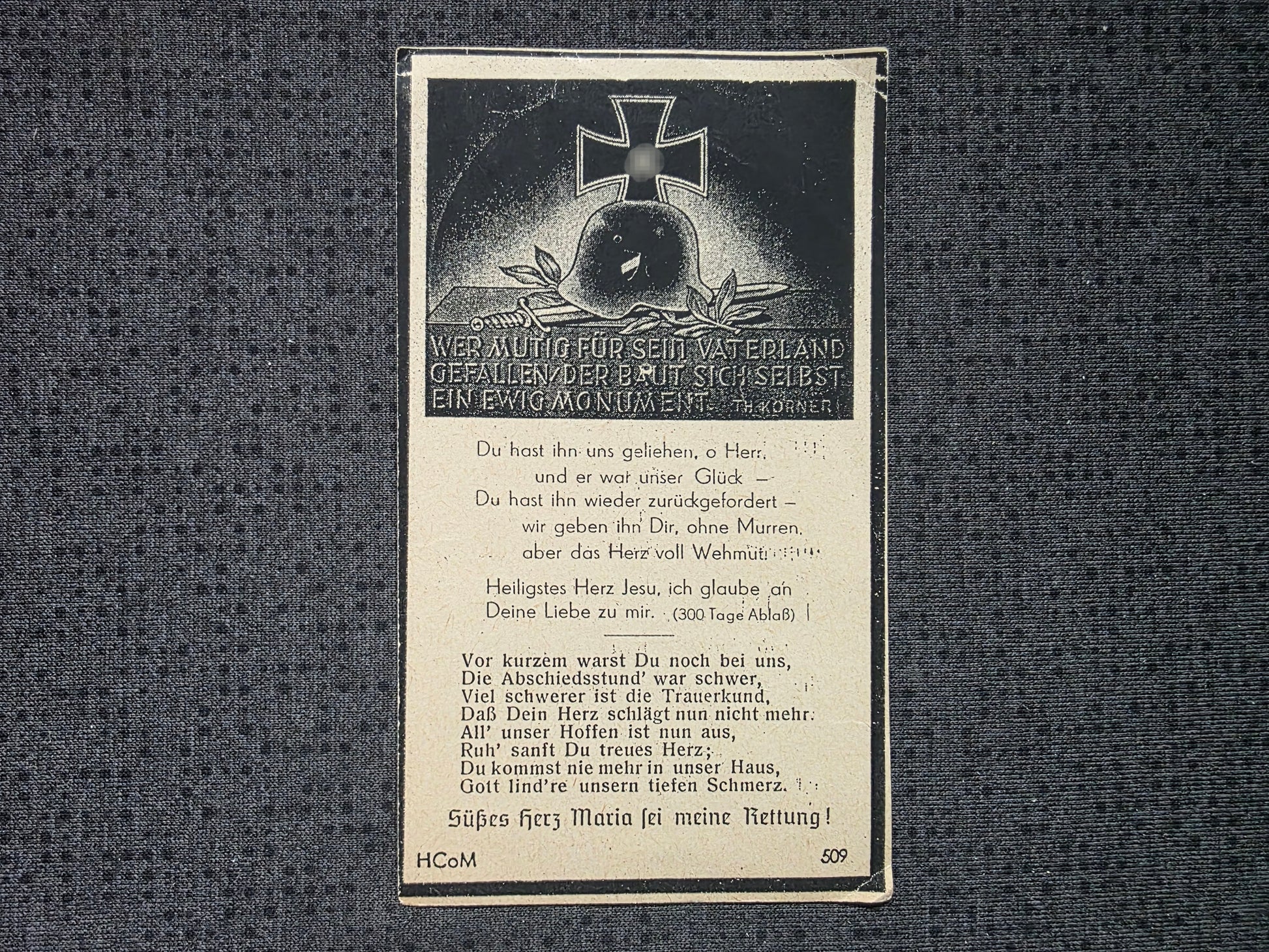 Sterbebild Gefreiter Niederaichbach 2. Komp. Panzer-Gren. Regt. 40 Chrząstówka Polen
