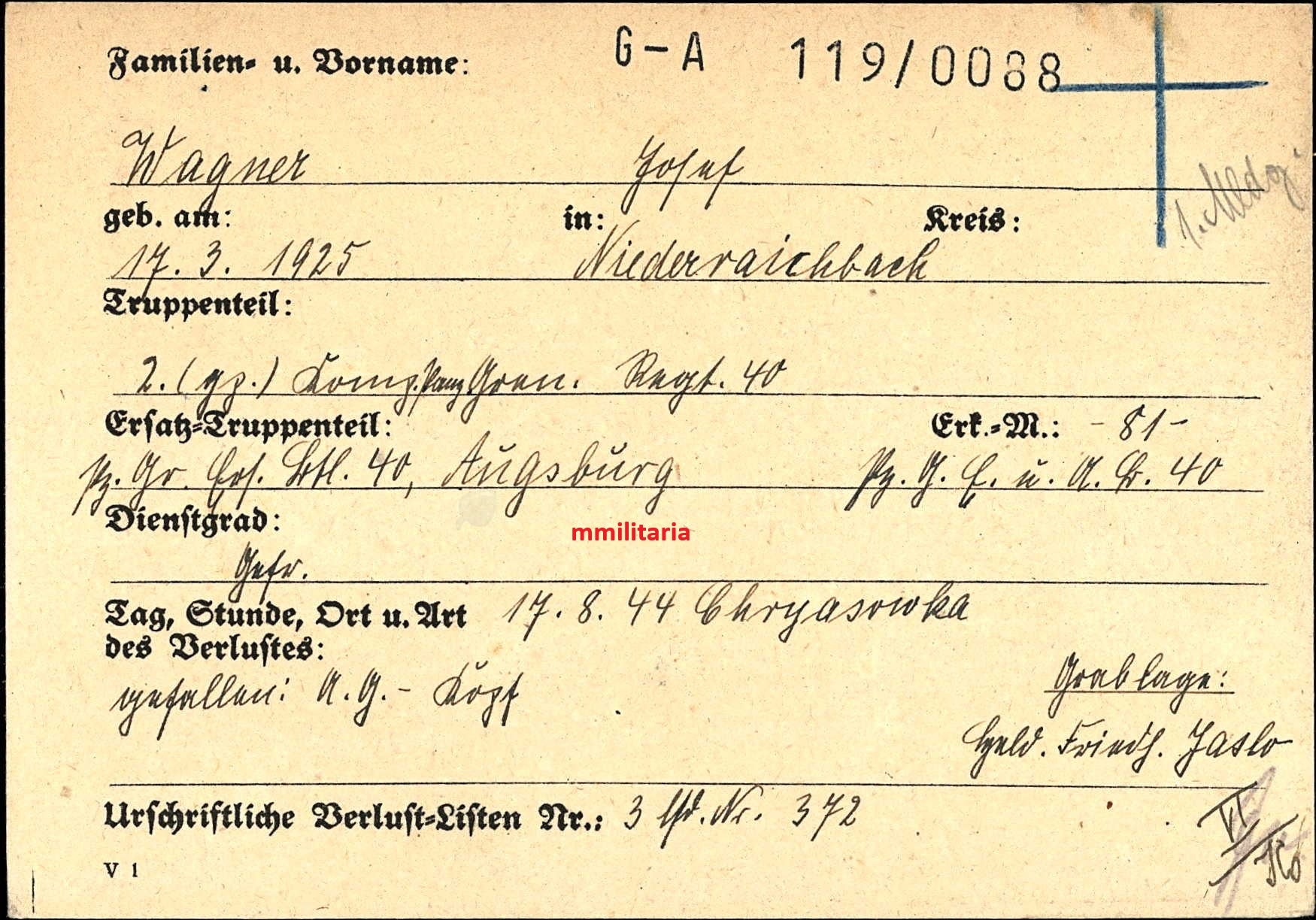 Gefallen am 17.08.1944 in Chrzastowka (Polen)
