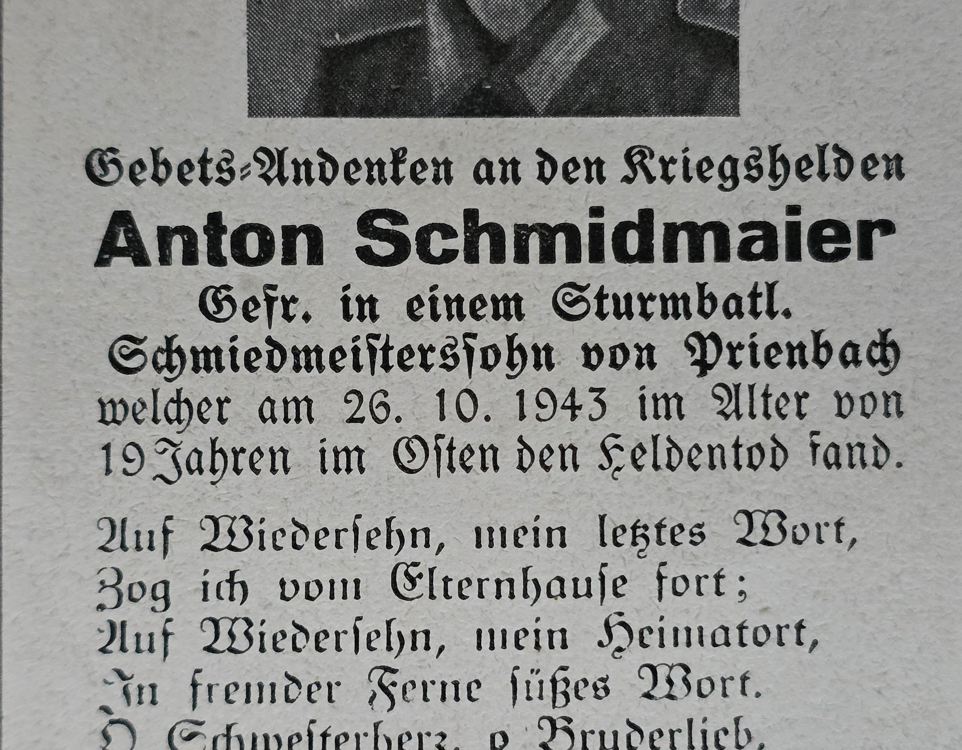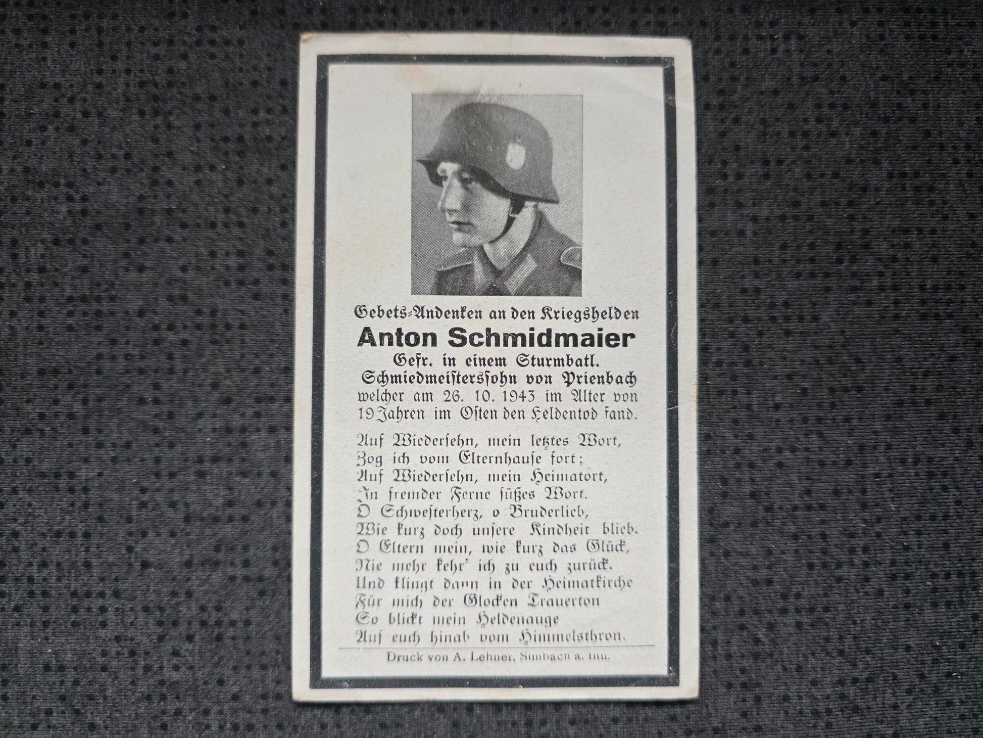 Sterbebild Gefreiter Prienbach Sturmbataillon südl. Mlinok Dnjepr Ukraine