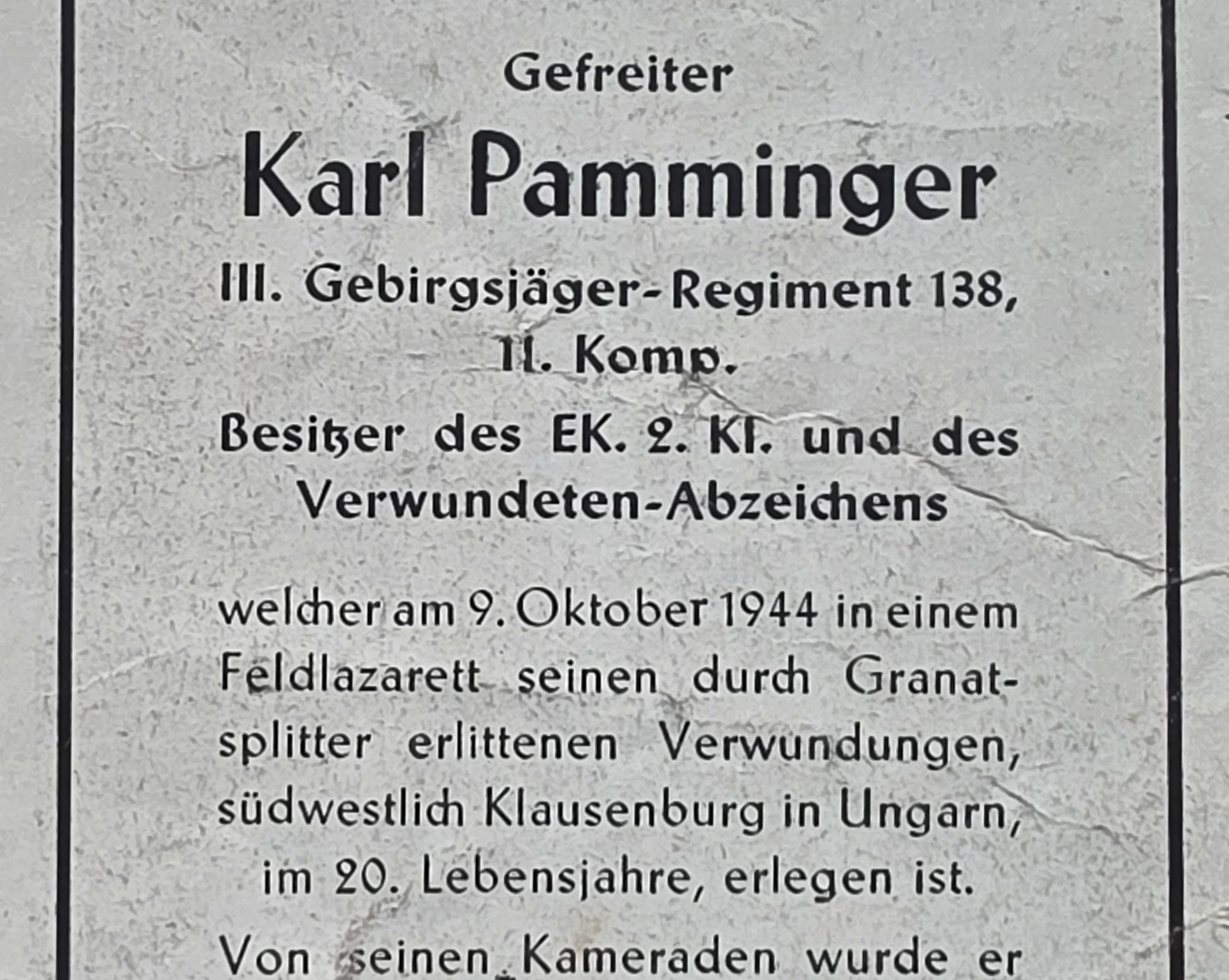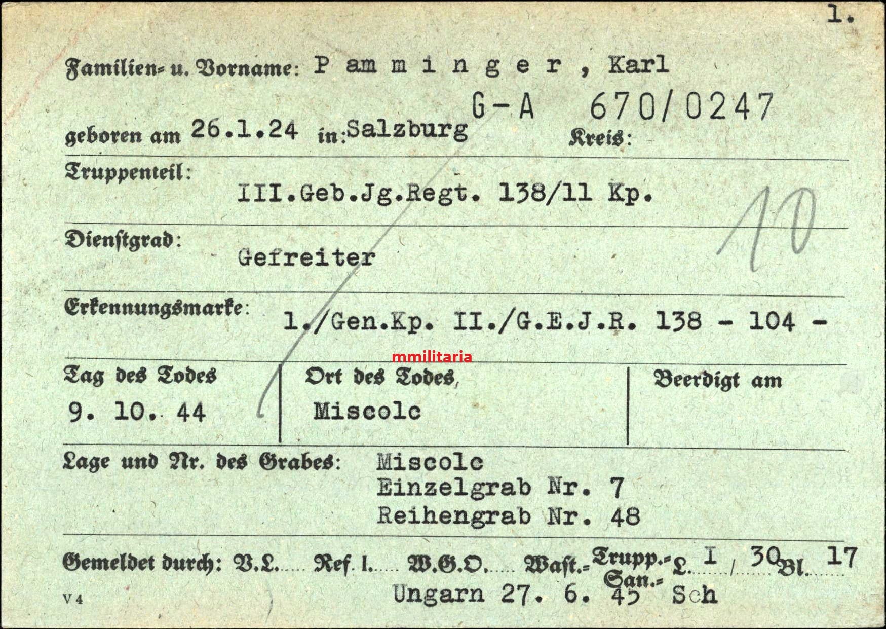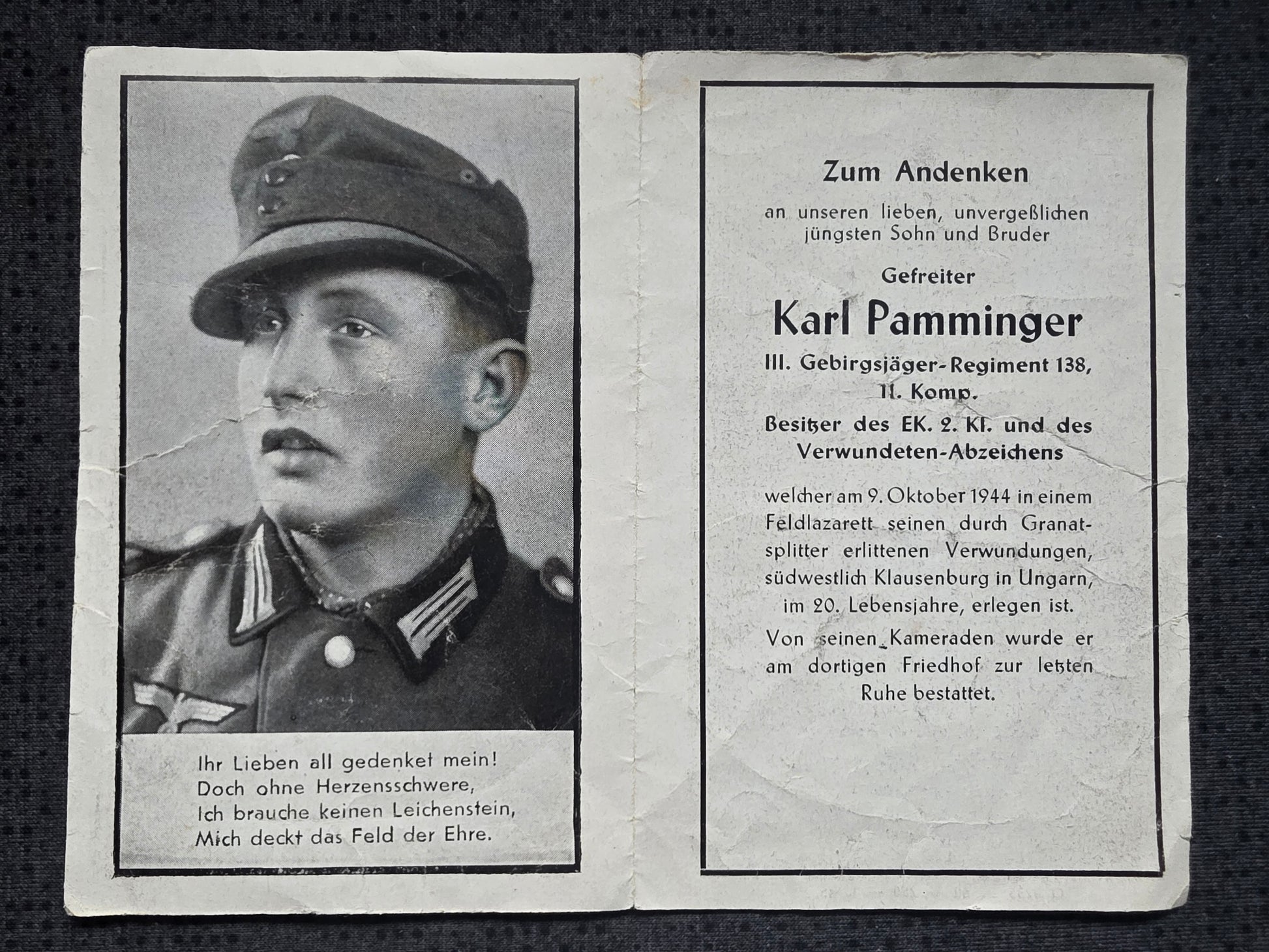 Sterbebild Gefreiter Salzburg III Geb.-Jäger Regt. 138/11 Kp. Grabfoto Klausenburg Miskolc Ungarn