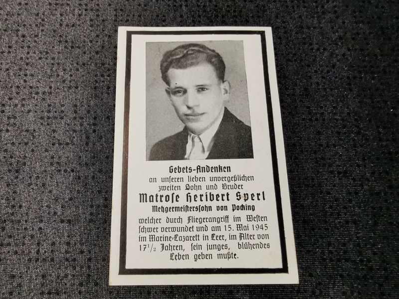 Sterbebild Matrose Endkampf Fliegerangriff Westen Leer Deutschland