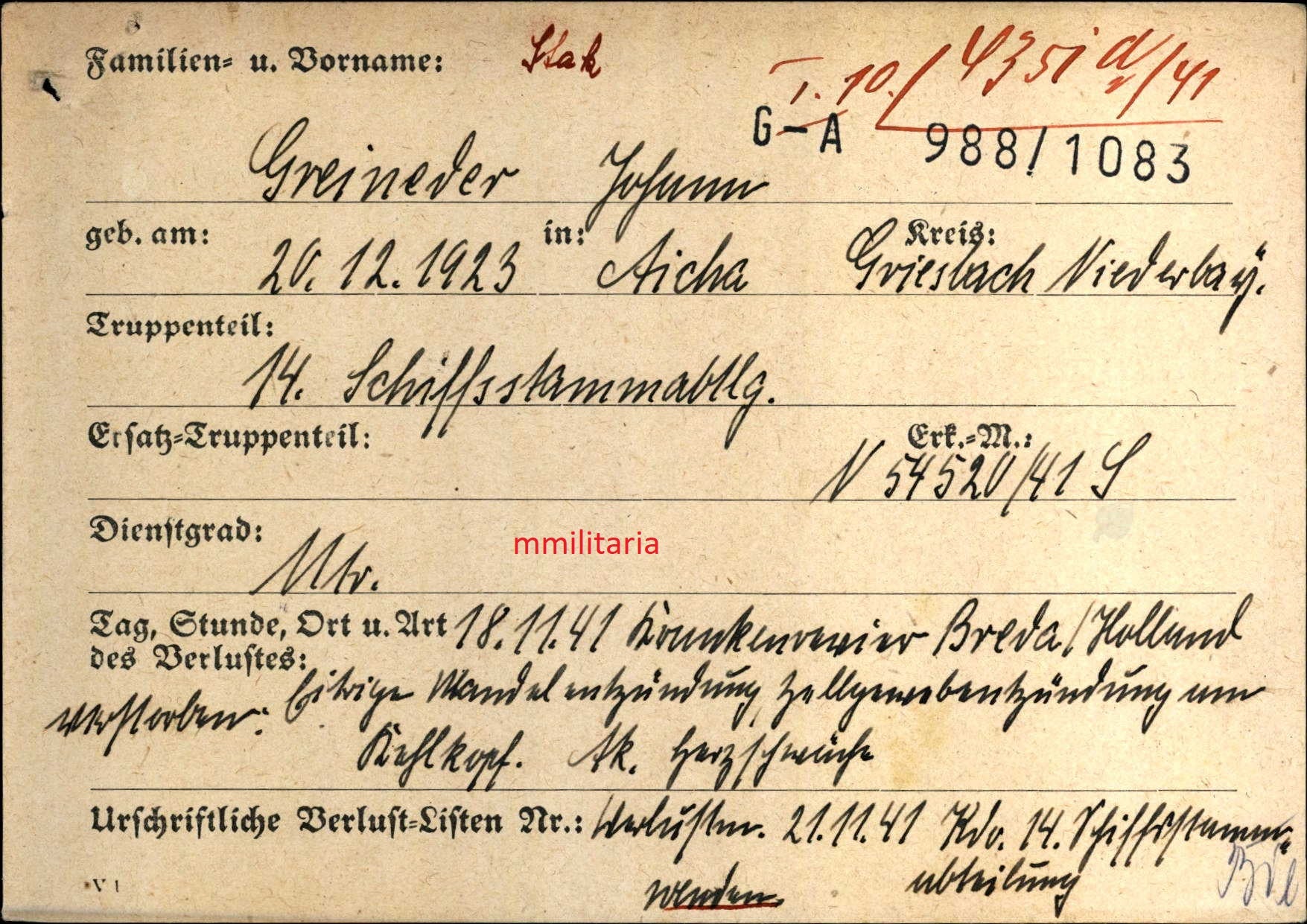 Gestorben am 18.11.1941 im Marine-Lazarett Breda (Holland)