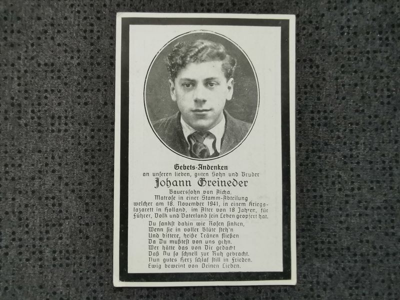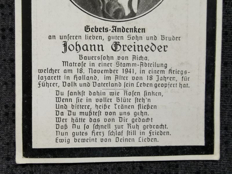 Sterbebild Matrose Kommando 14.SStA 18 Jahre Marine-Lazarett Breda Ysselsteyn Holland