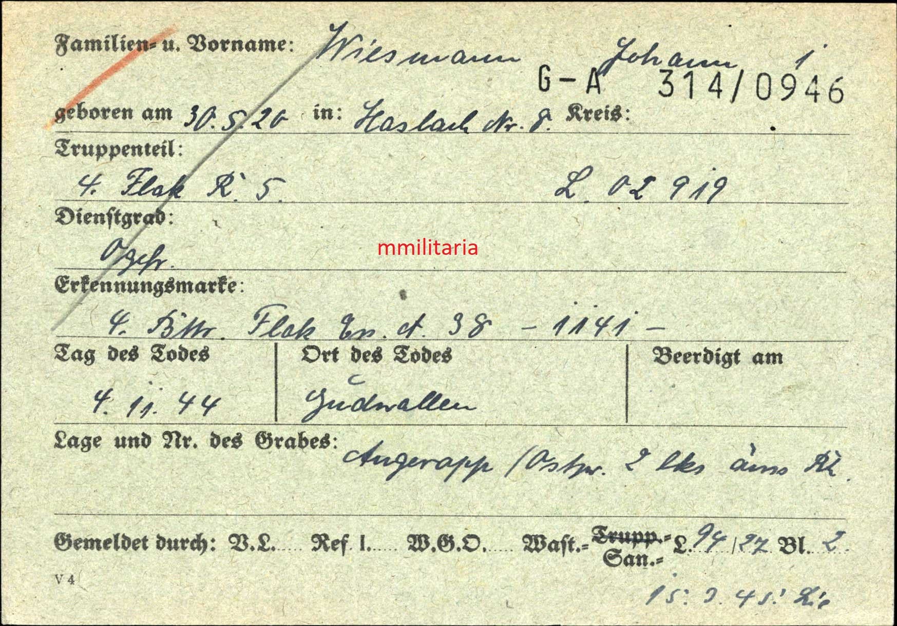 Gefallen am 04.11.1944 in Gudwallen / Ostpreußen