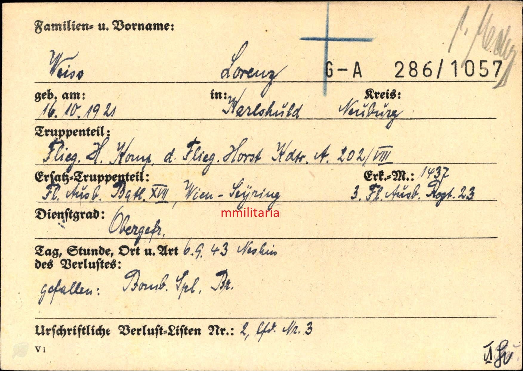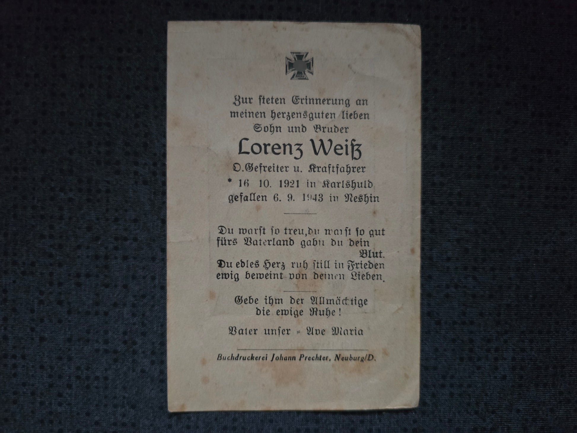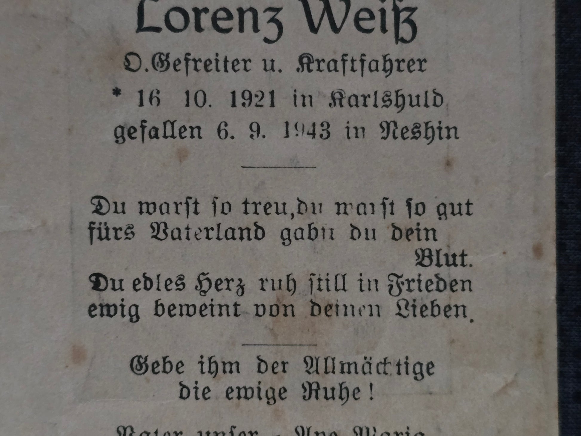 Sterbebild Obergefreiter Karlshuld Fliegerhorst Komp. A 202/VII Neshin Ukraine