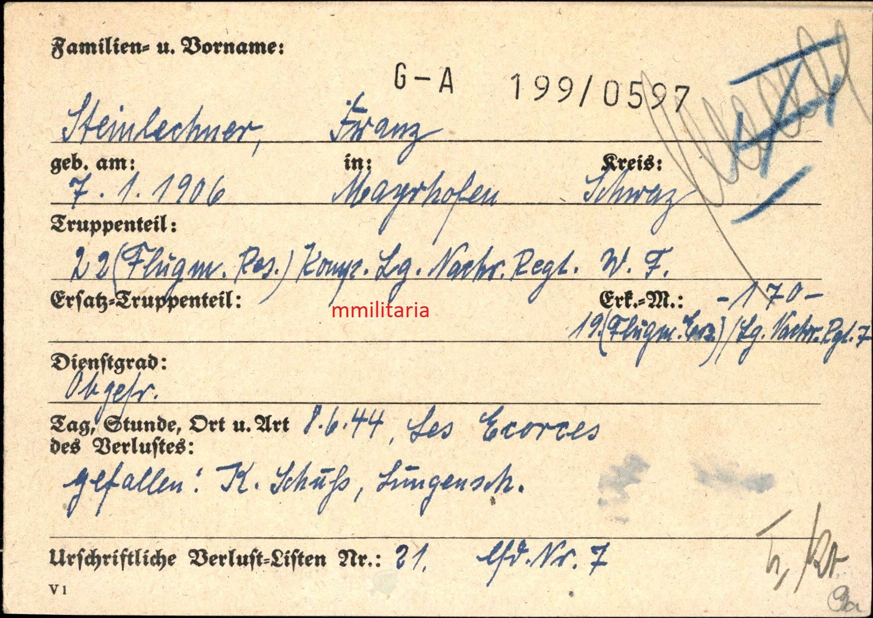 Gefallen am 08.06.1944 in Les Ecorces (Frankreich)