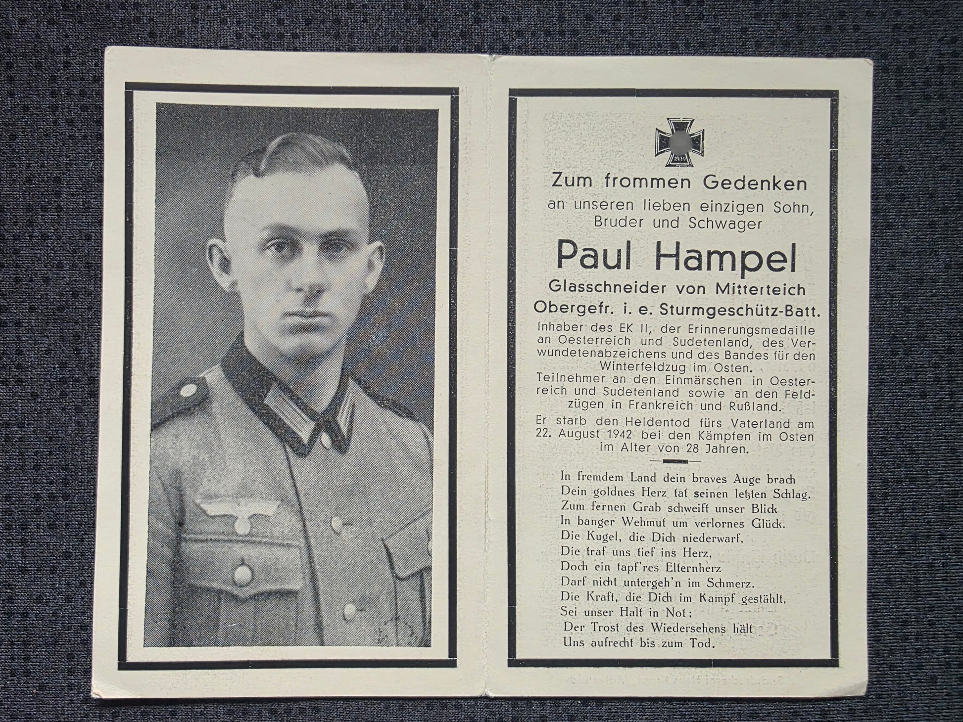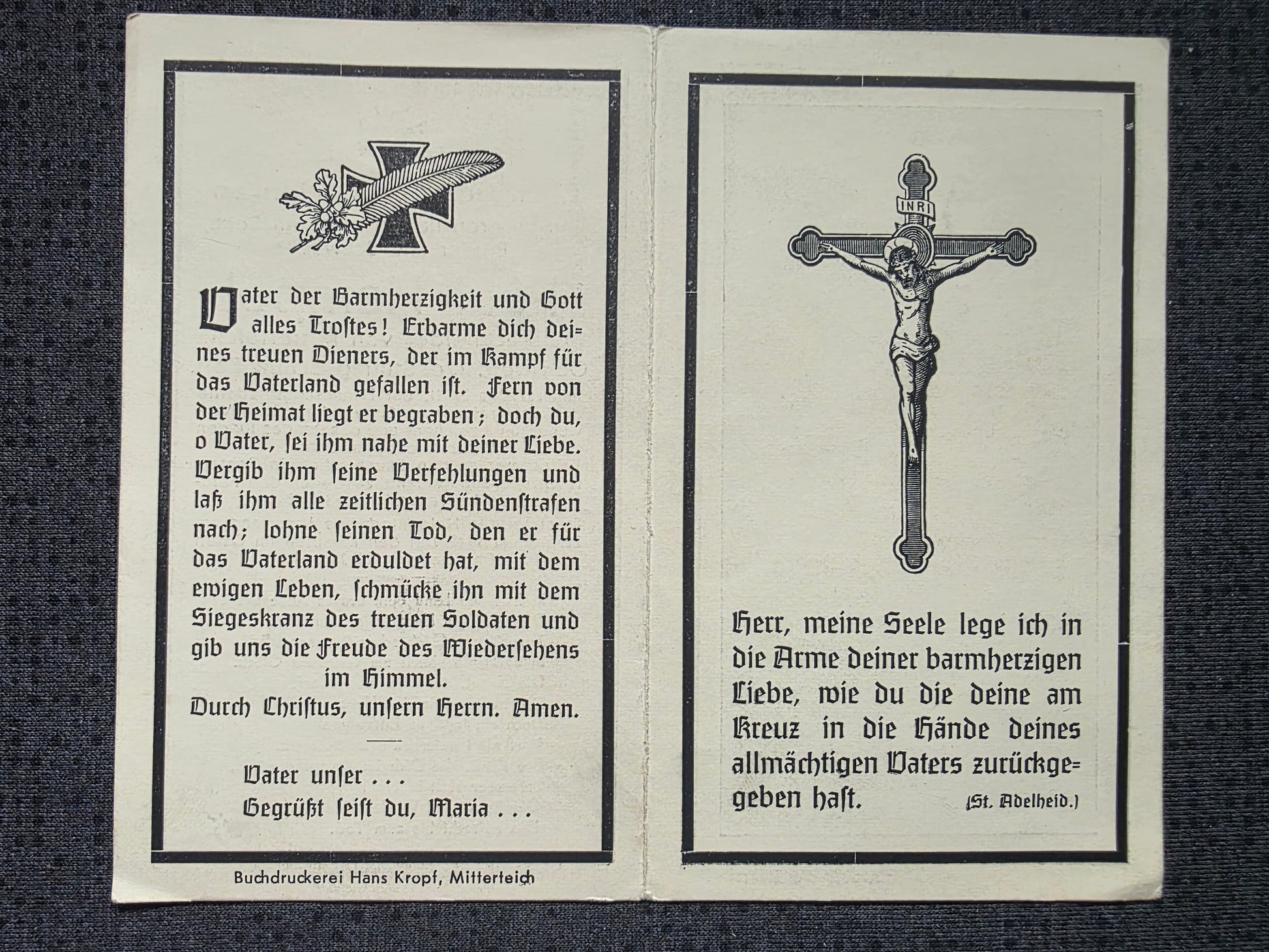 Sterbebild Obergefreiter Mitterteich 3. Batterie Sturm-Geschütz Abt. 189 Österreichmedaille Lunewo Russland