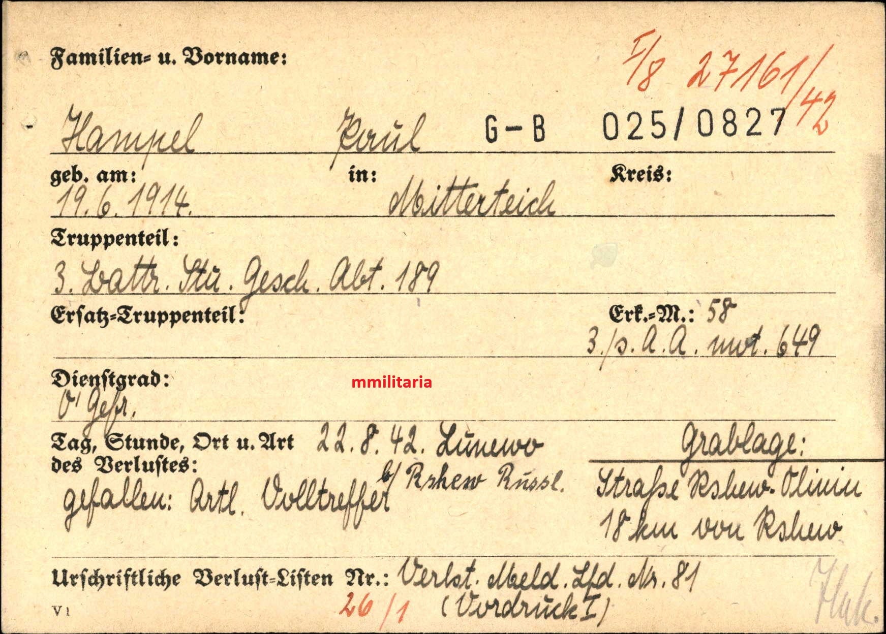 Gefallen am 22.08.1942 bei Lunewo (Russland)