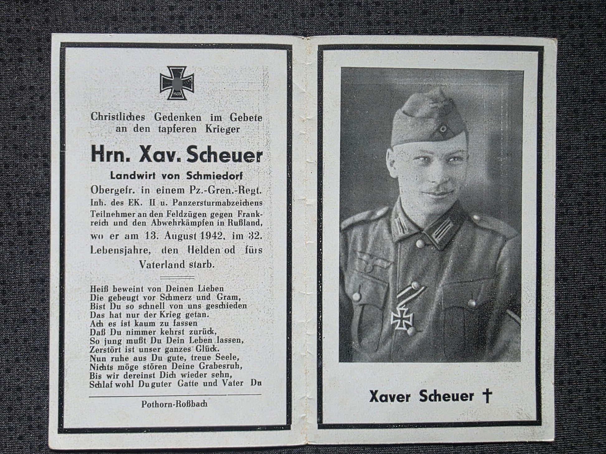 Sterbebild Obergefreiter Rehmbach 6. Komp. Panzer-Gren. Regt. 63 Cholmischtschi Russland