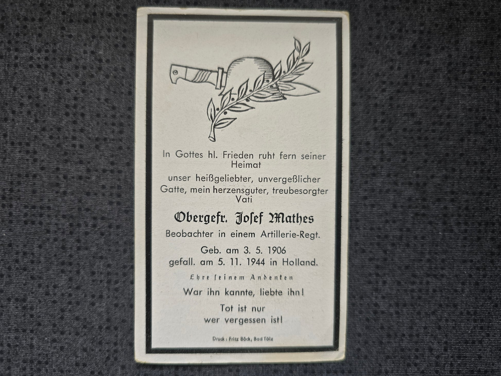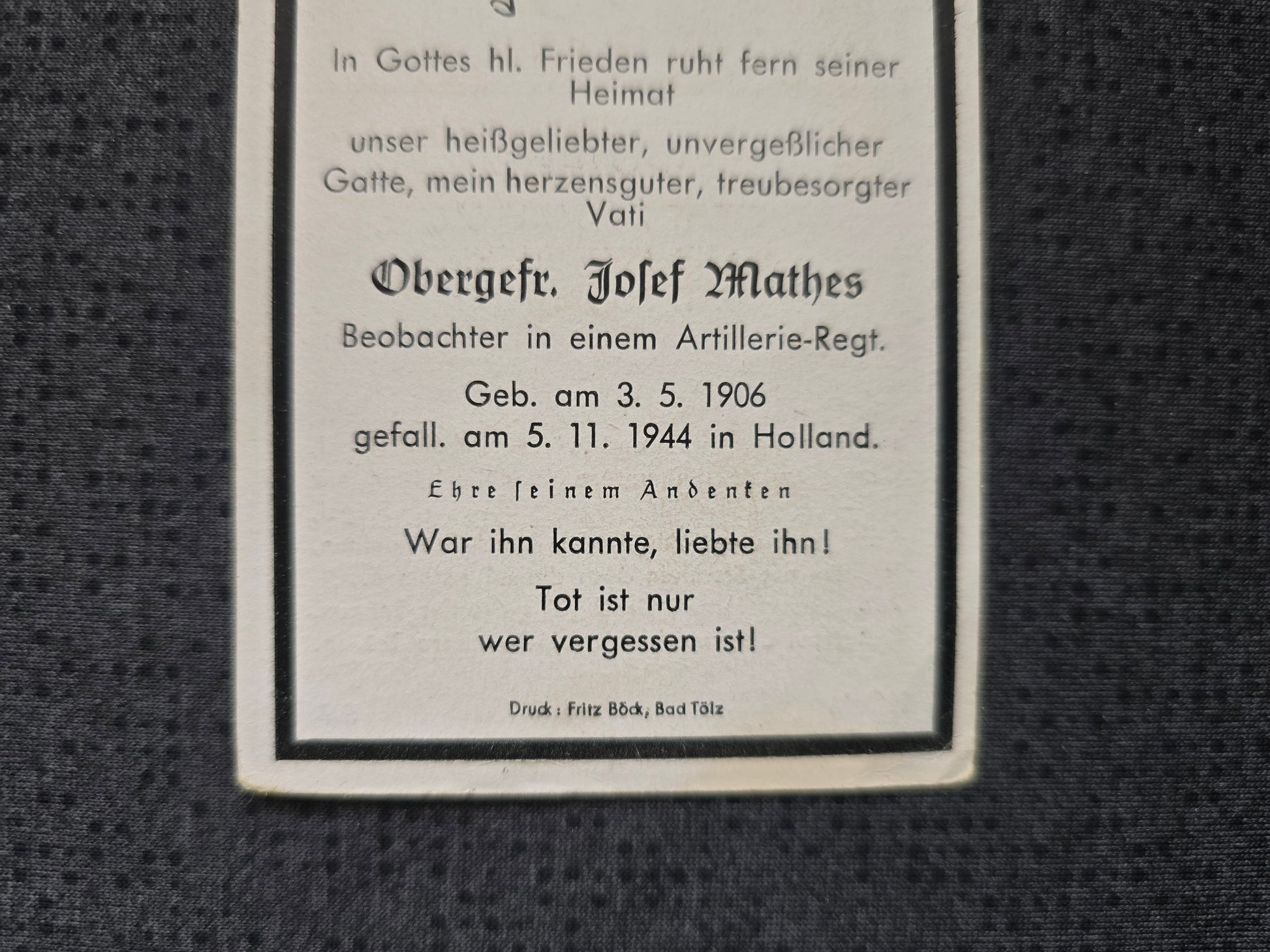 Sterbebild Obergefreiter Unterammergau Artillerie Regt. Ysselsteyn Holland