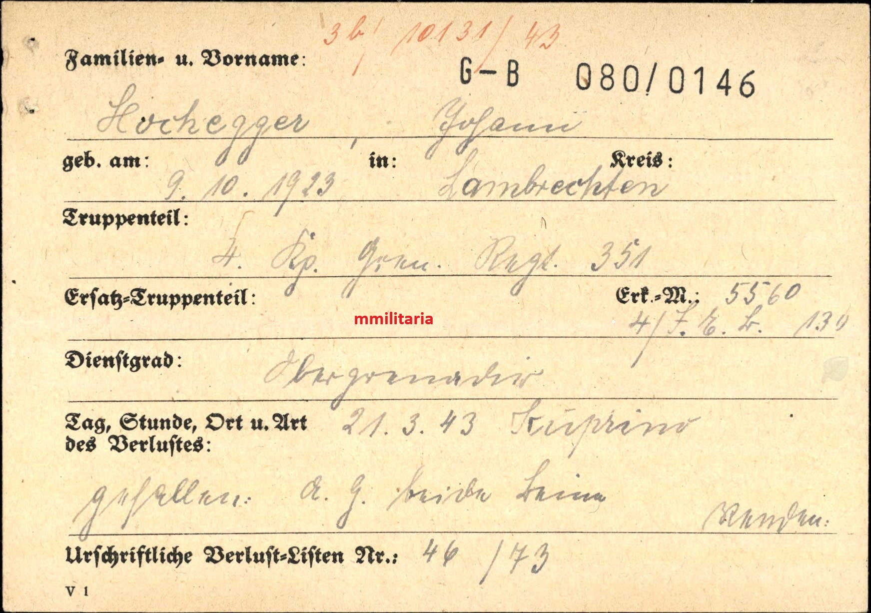 Sterbebild Obergrenadier Lambrechten MG-Schütze 4. Komp. Gren. Regt. 351 Kuprino Russland