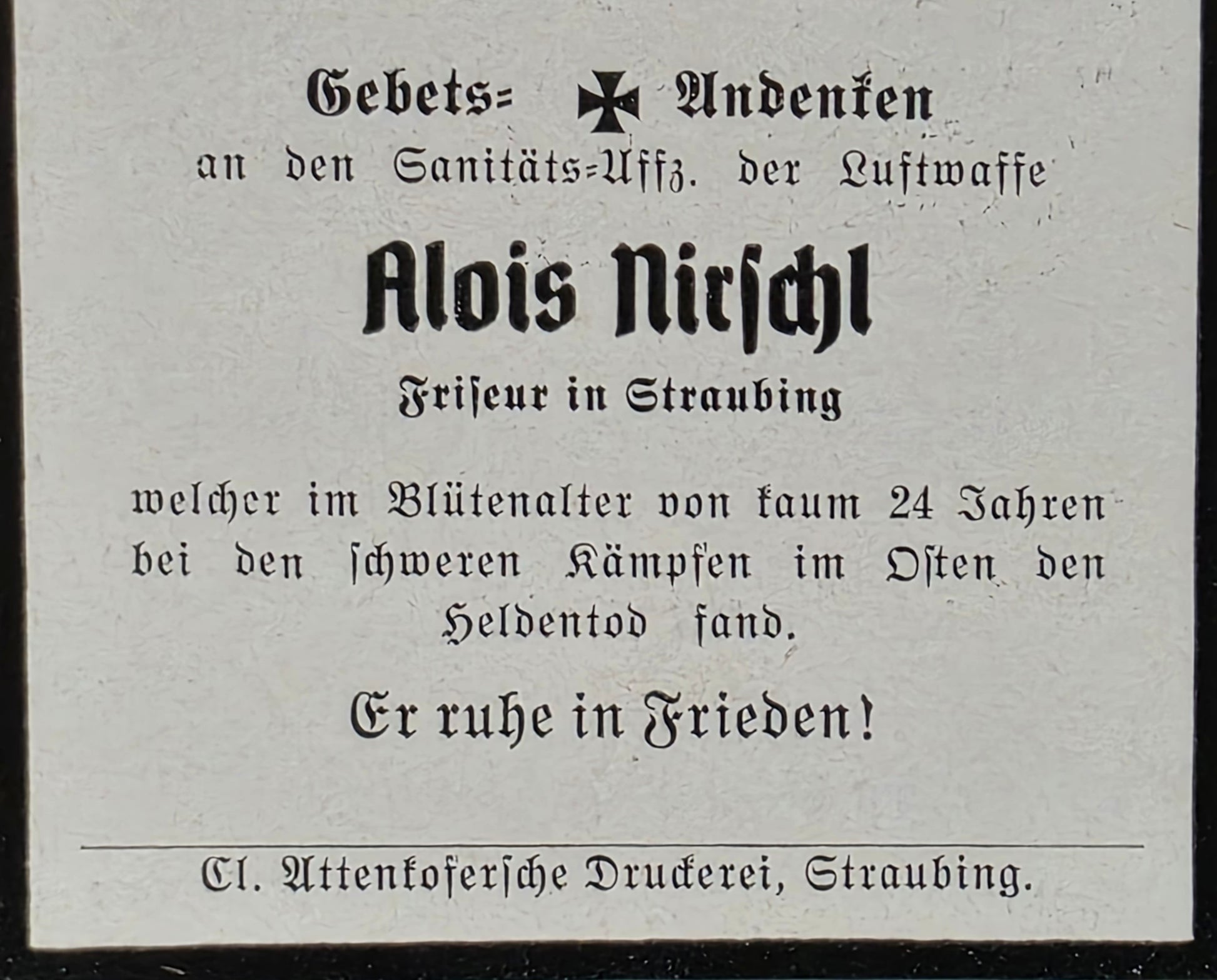 Sterbebild Sanitäts-Unteroffizier Straubing Luftwaffe Toila Estland