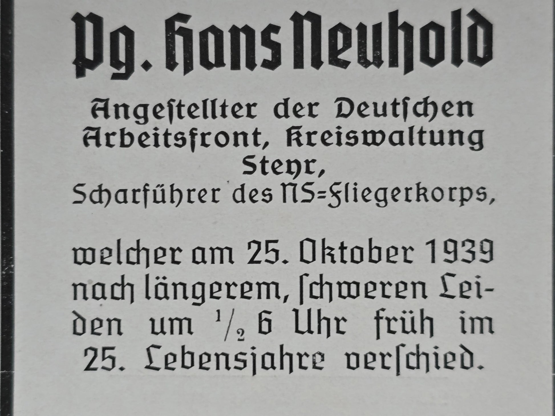 Sterbebild Scharführer Steyr NS-Fliegerkorps DAF Gestorben 1939