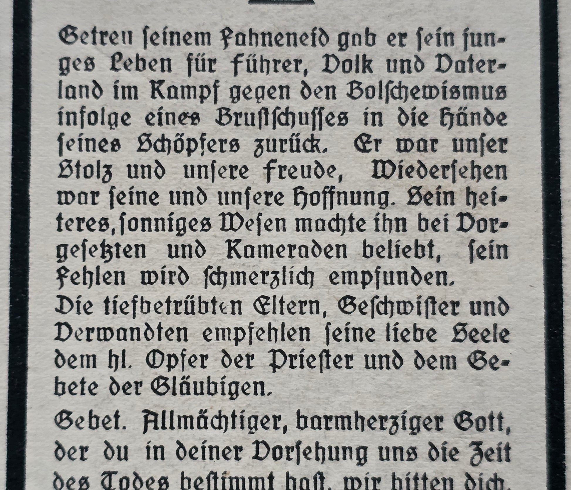 Sterbebild Schütze Pömbsen 10. Komp. Inf. Regt. 37 Klinavas Pagraužiai Litauen