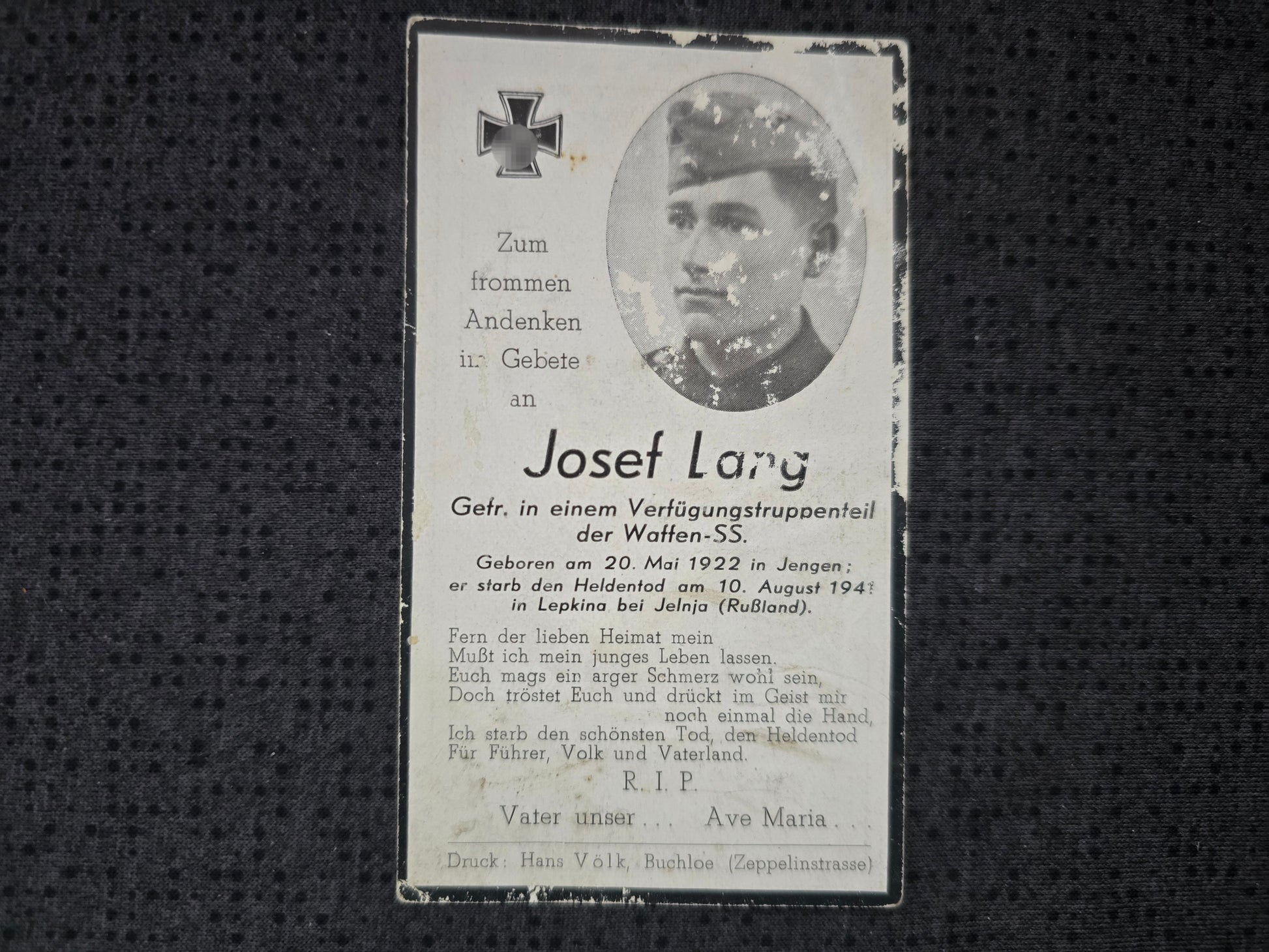 Sterbebild SS-Sturmmann Jengen SS-Verfügungstruppe Lepkina Jelnja Russland