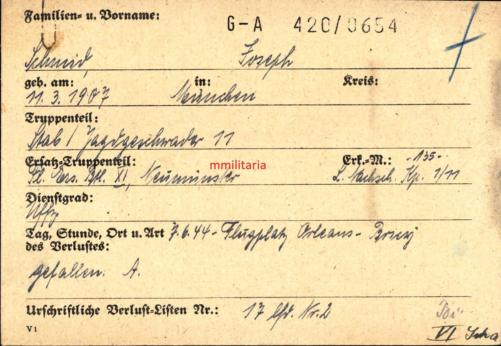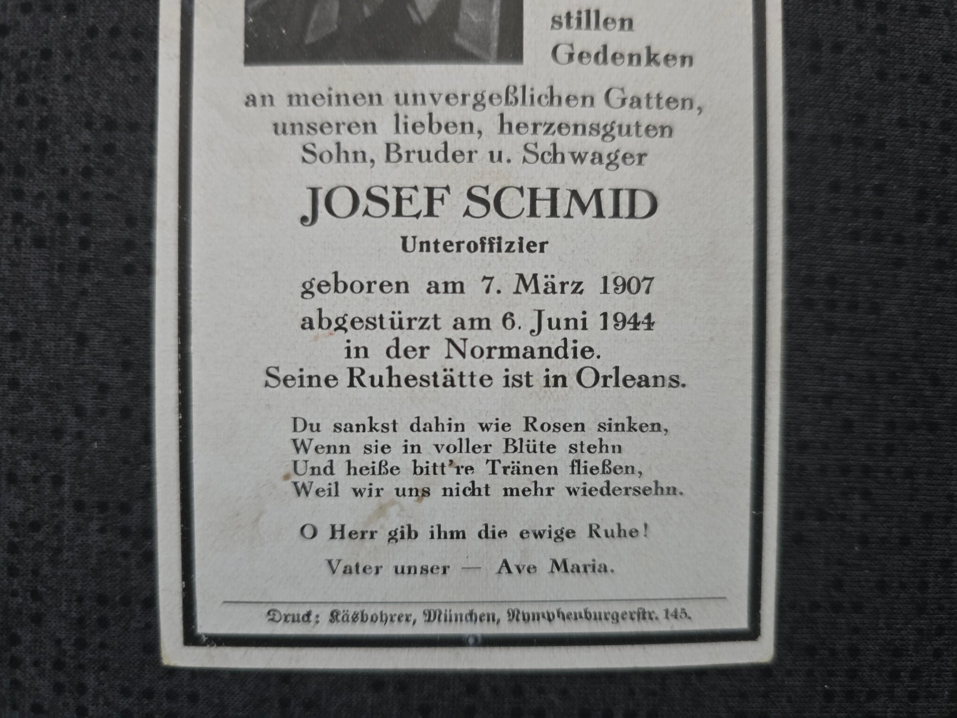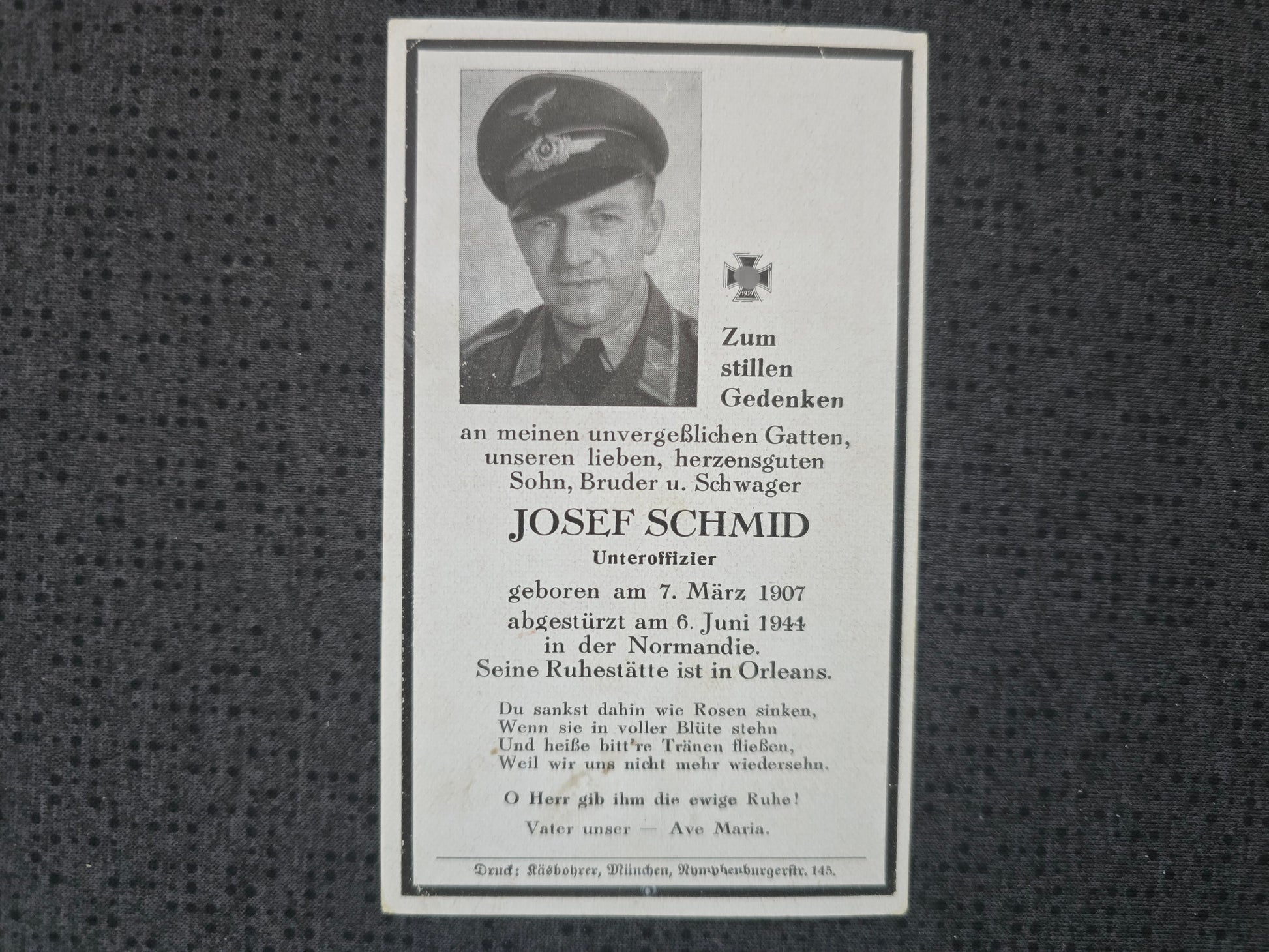 Sterbebild Unteroffizier München Stab/Jagdgeschwader 11 DDay Orleans-Bricy Normandie Frankreich