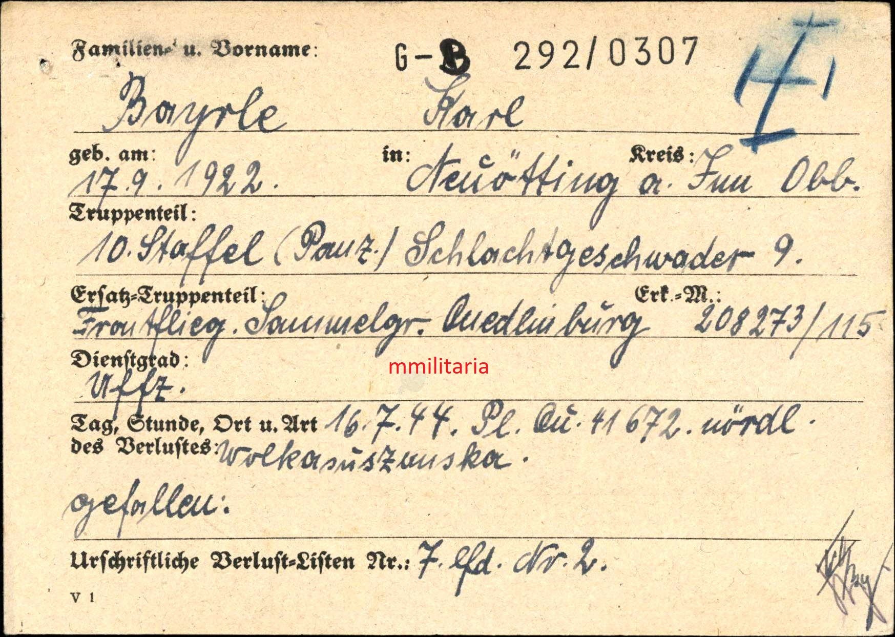 Sterbebild Unteroffizier Neuötting Pilot 10. Staffel Schlachtgeschwader 9 FFS Bronze Radziechow Polen