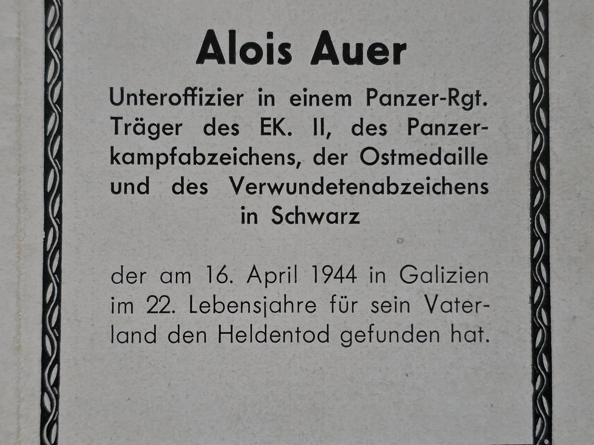 Sterbebild Unteroffizier Rottau Stab 17. Panzer-Division Galizien Nizinow Polen