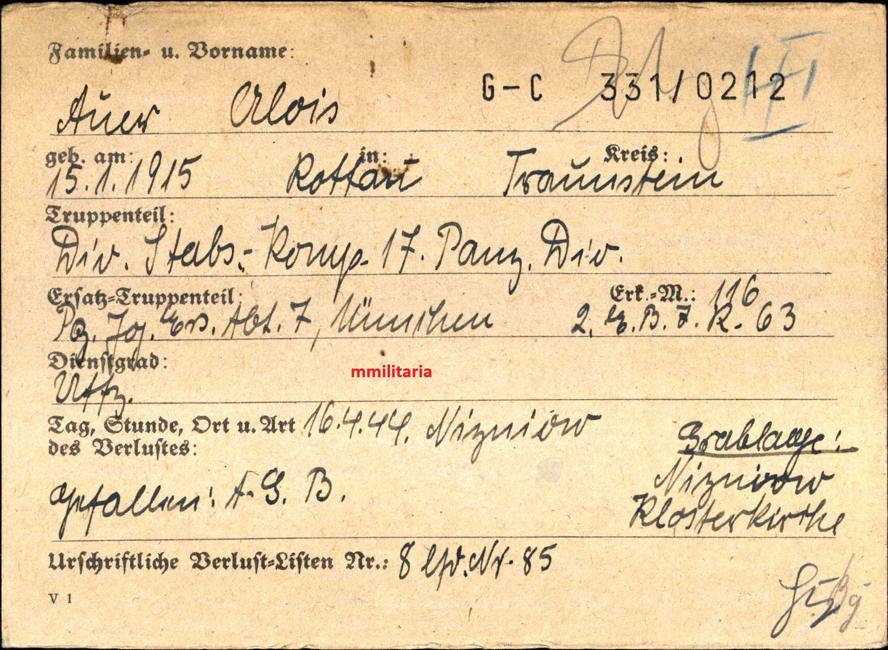 Gefallen am 16.04.1944 in Nizinow / Galizien