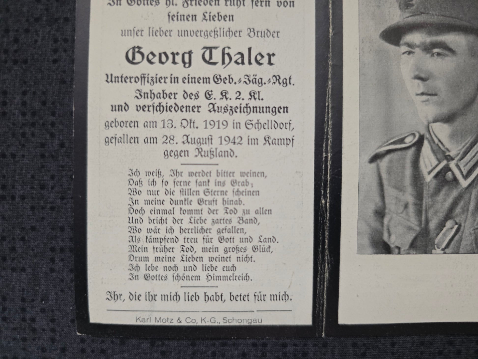 Sterbebild Unteroffizier Schelldorf 8. Komp. Jäger Regt. 204 EK II Popowa Russland