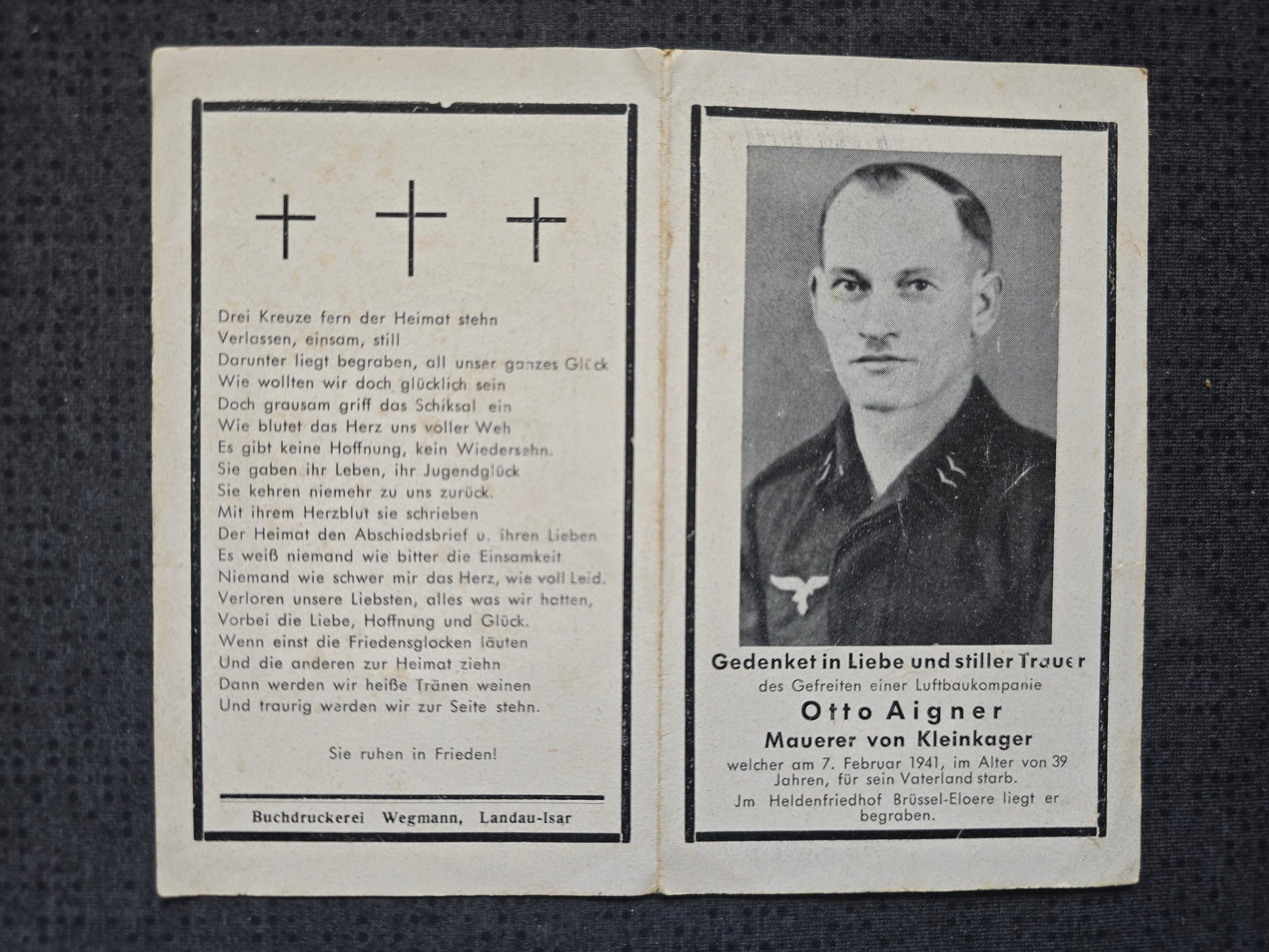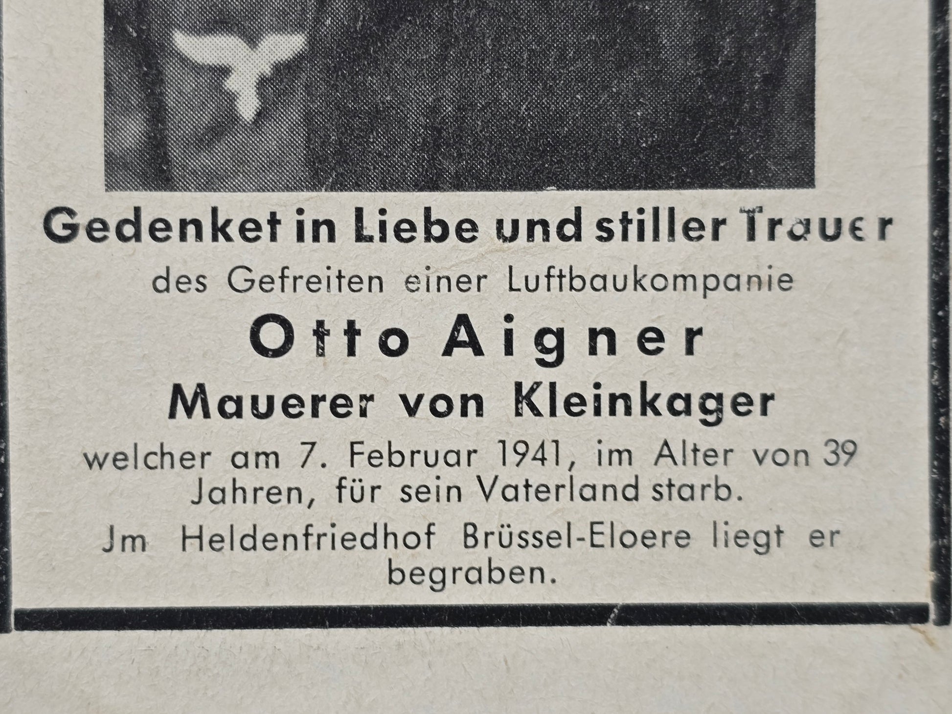 Sterbebild 3 Brüder Kleinkager Gefreiter 7. Inf. Regt. 40 PSA Panzergrenadier Gefreiter Luftbau Komp. 1/17/XVII Brüssel Lommel Belgien