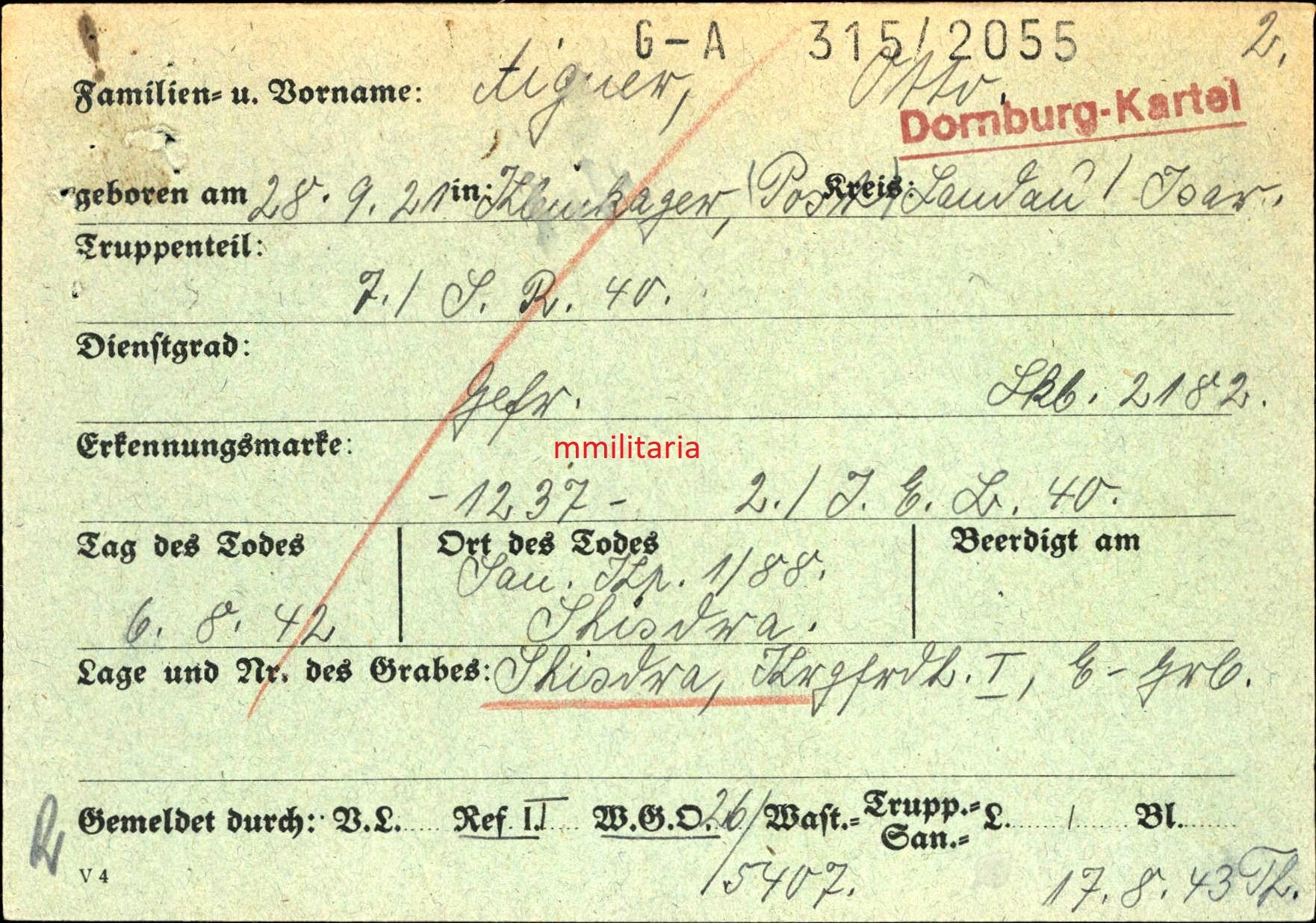 Gefallen am 06.08.1942 in Shisdra (Russland)