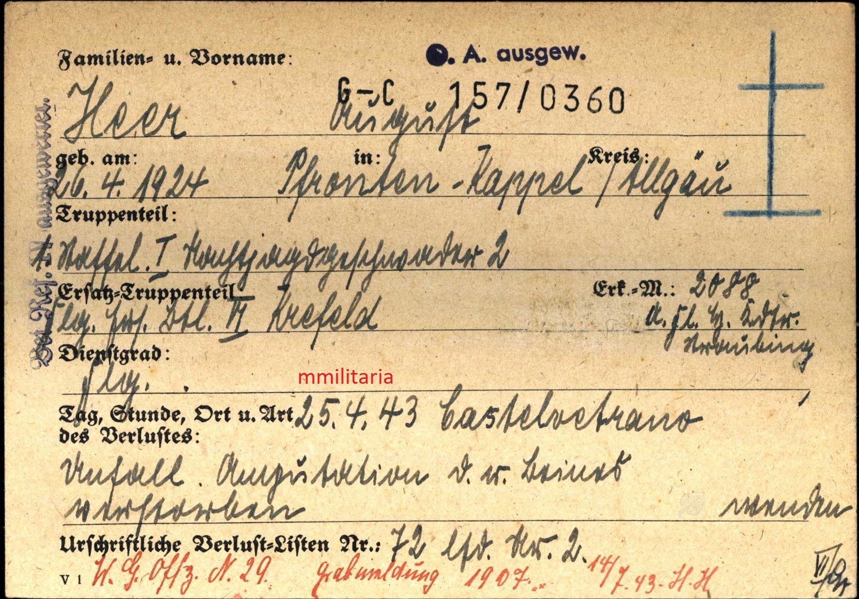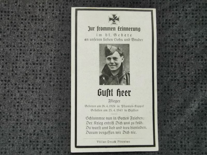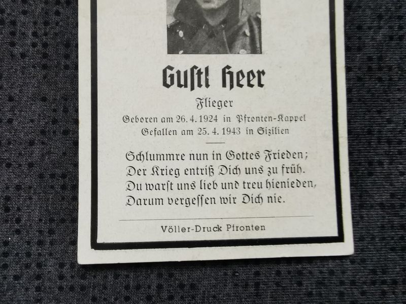 Sterbebild Flieger Pfronten 1. Staffel I Nachtjagdgeschwader 2 1./NJG-2 Castel Vetrano Motta St. Anastasia Sizilien Italien