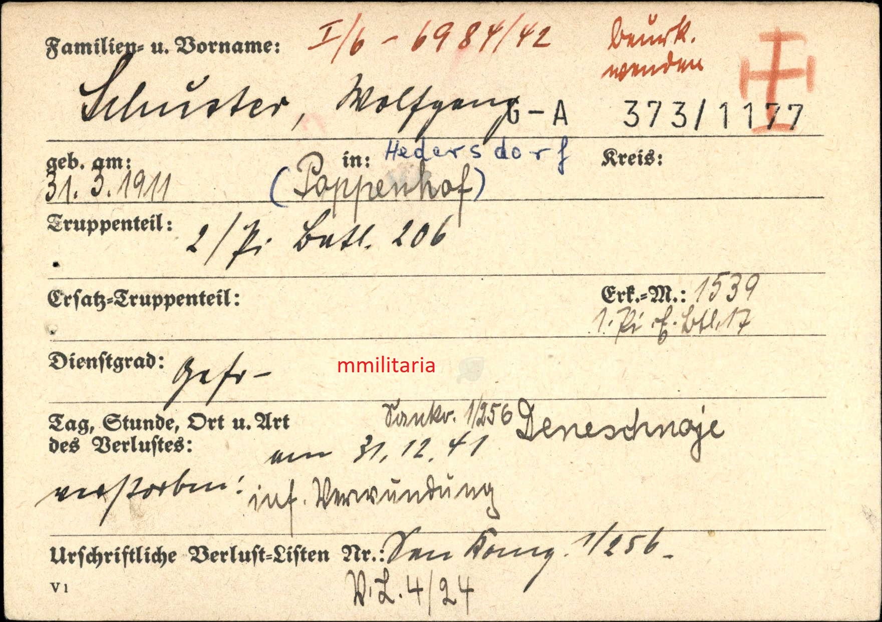 Gefallen am 30.12.1941 bei Molotschagino (Russland)