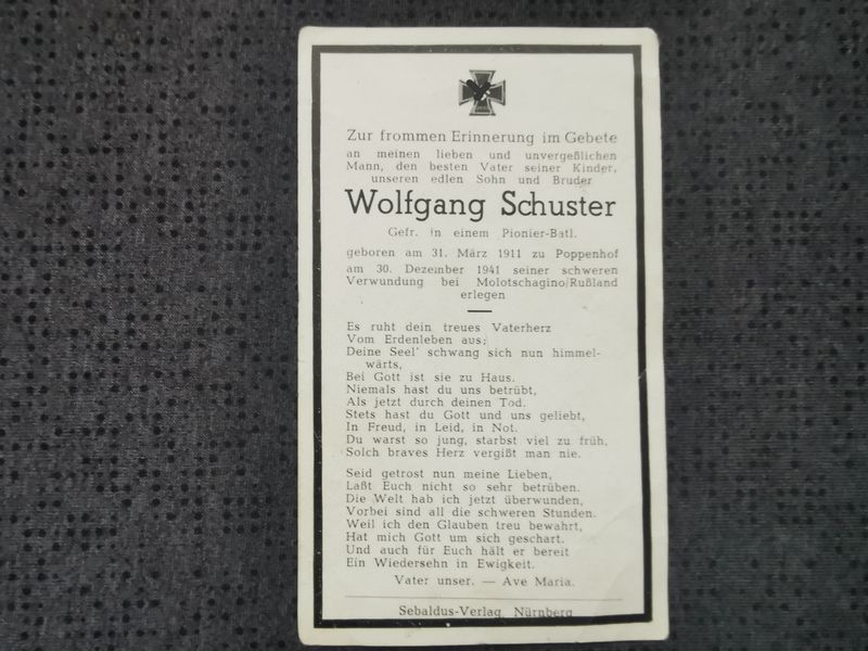 Sterbebild Gefreiter Poppenhof 2. Pionier Btl. 206 Molotschagino Deneshnoje Russland