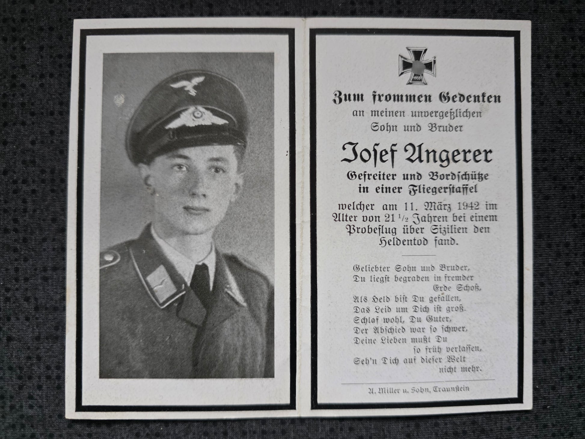 Sterbebild Gefreiter Berg Bordschütze 5./KG-77 Comiso Motta S.Anastasia Italien