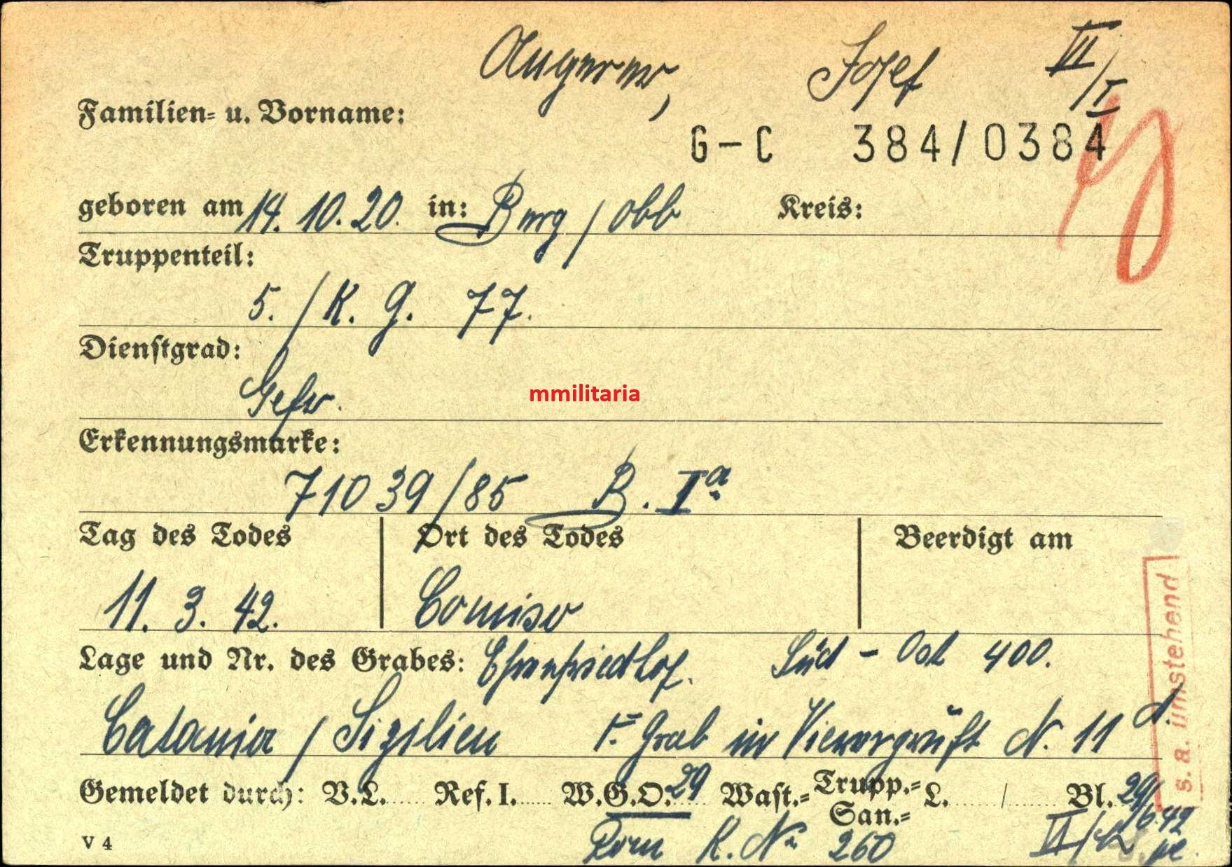 Gefallen am 11.03.1942 in Comiso (Italien)
