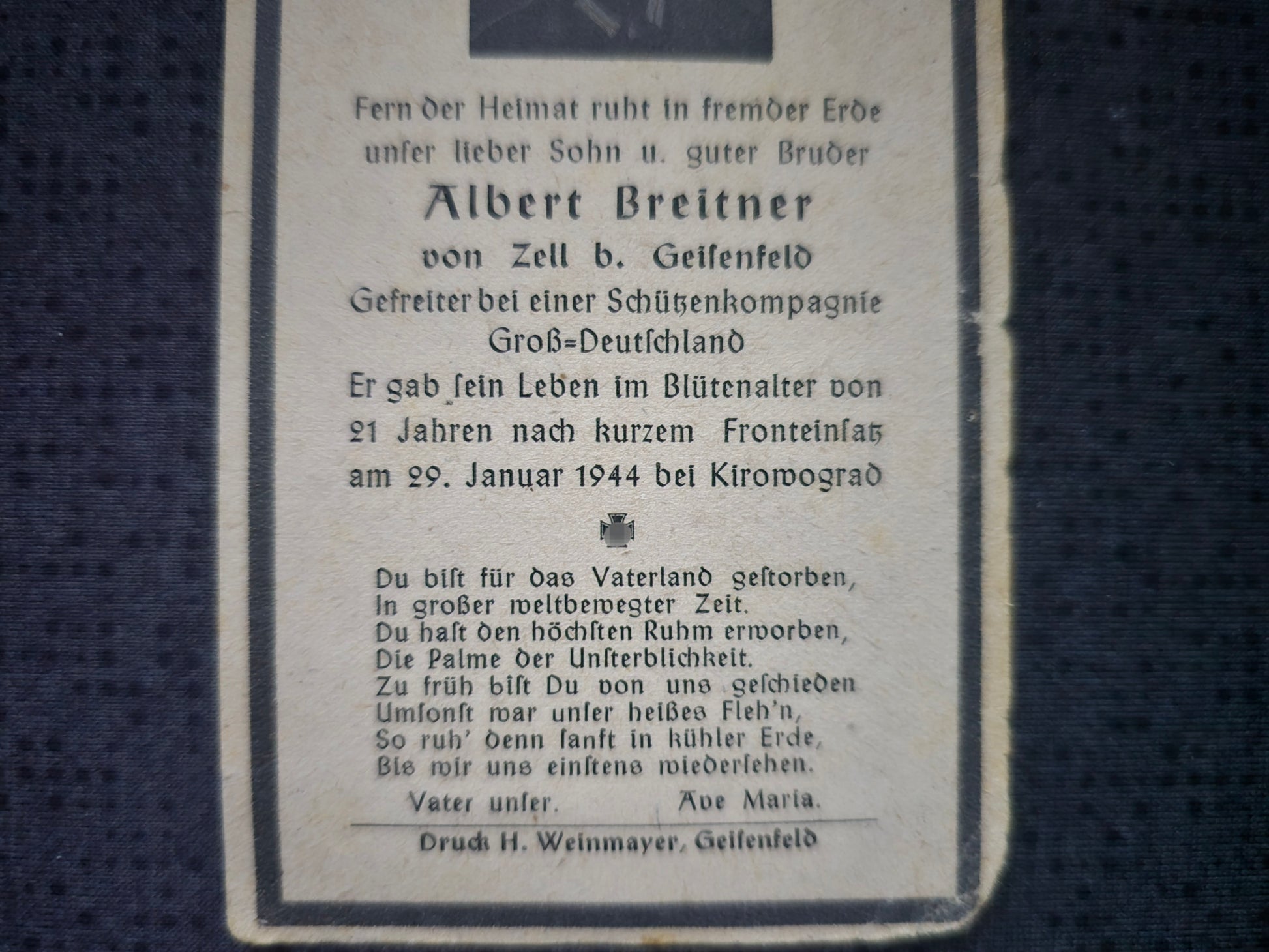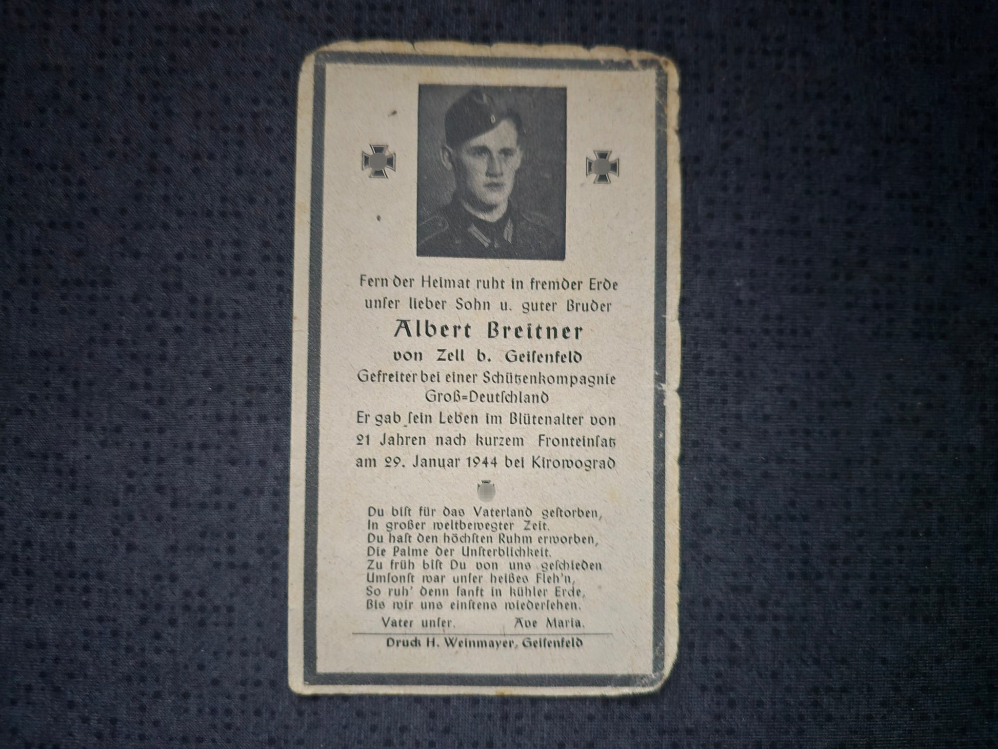 Sterbebild Gefreiter Greifenfeld Schützenkompanie "Großdeutschland" GD Kirowograd Russland
