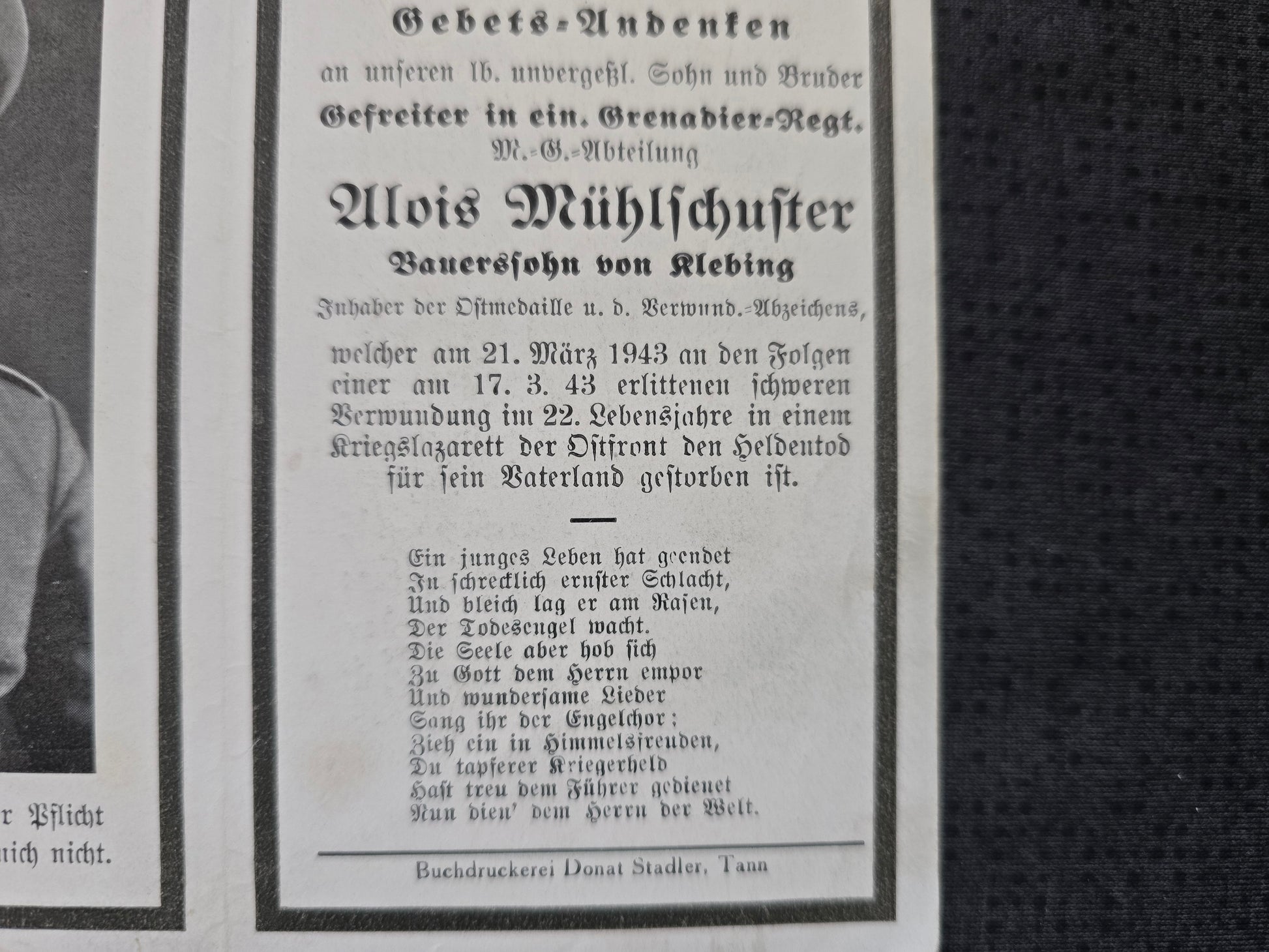 Sterbebild Gefreiter Klehing Grenadier Regt. MG Abt. Krgslaz. 4/684 Charkiw Ukraine