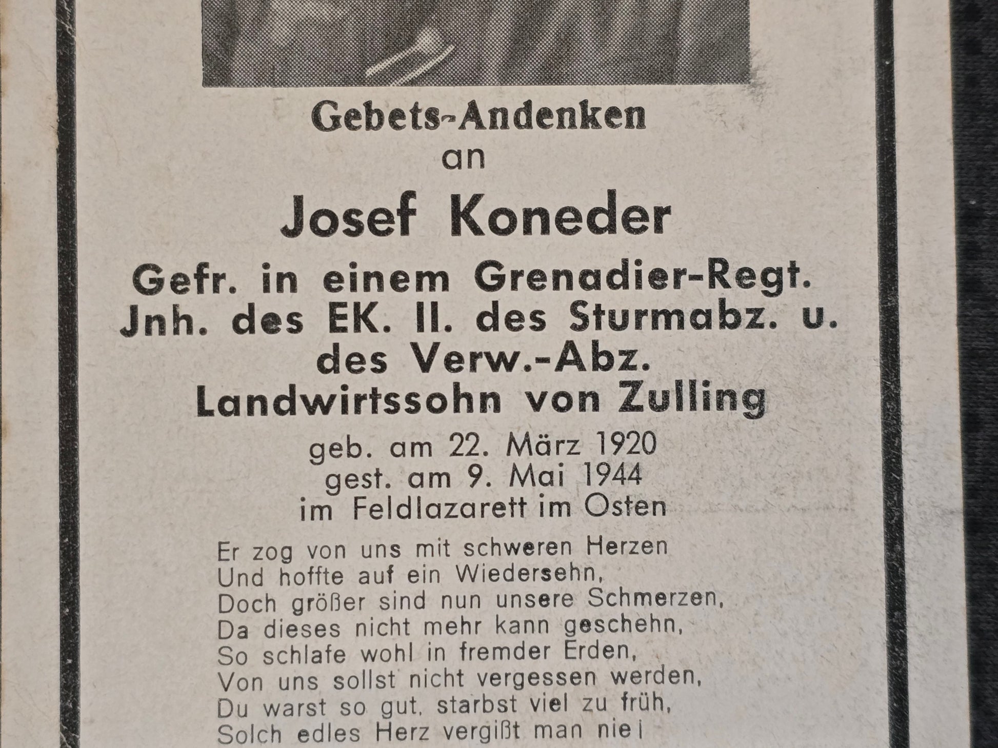 Sterbebild Gefreiter Landau Grenadier Regt. EK II Grabfoto Rückseite Rogatin Ukraine