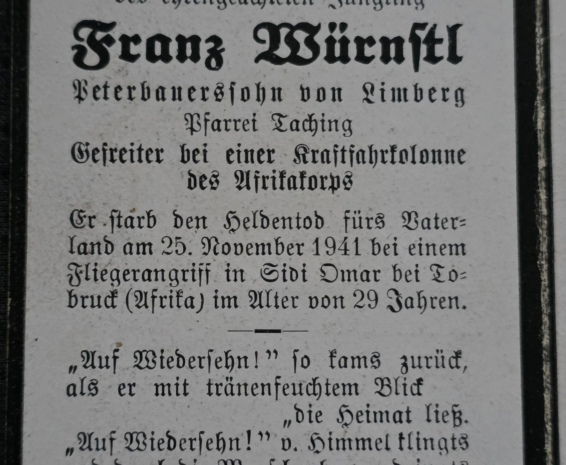 Sterbebild Gefreiter Limberg Kraftfahrkolonne DAK Afrikakorps Sid Omar Tobruk Libyen