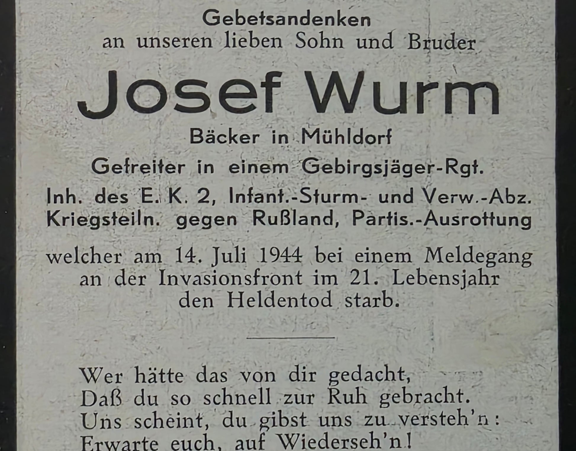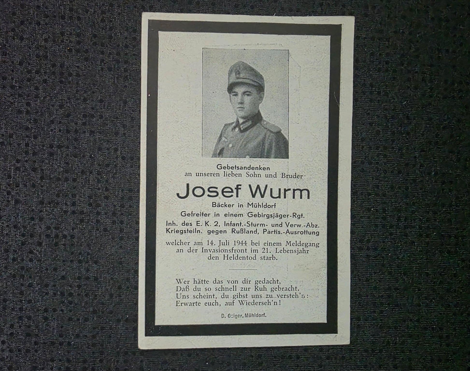 Sterbebild Gefreiter Mühldorf Gebirgsjäger Regt. Partisanenausrottung Invasionsfront Normandie La Vendelee Frankreich