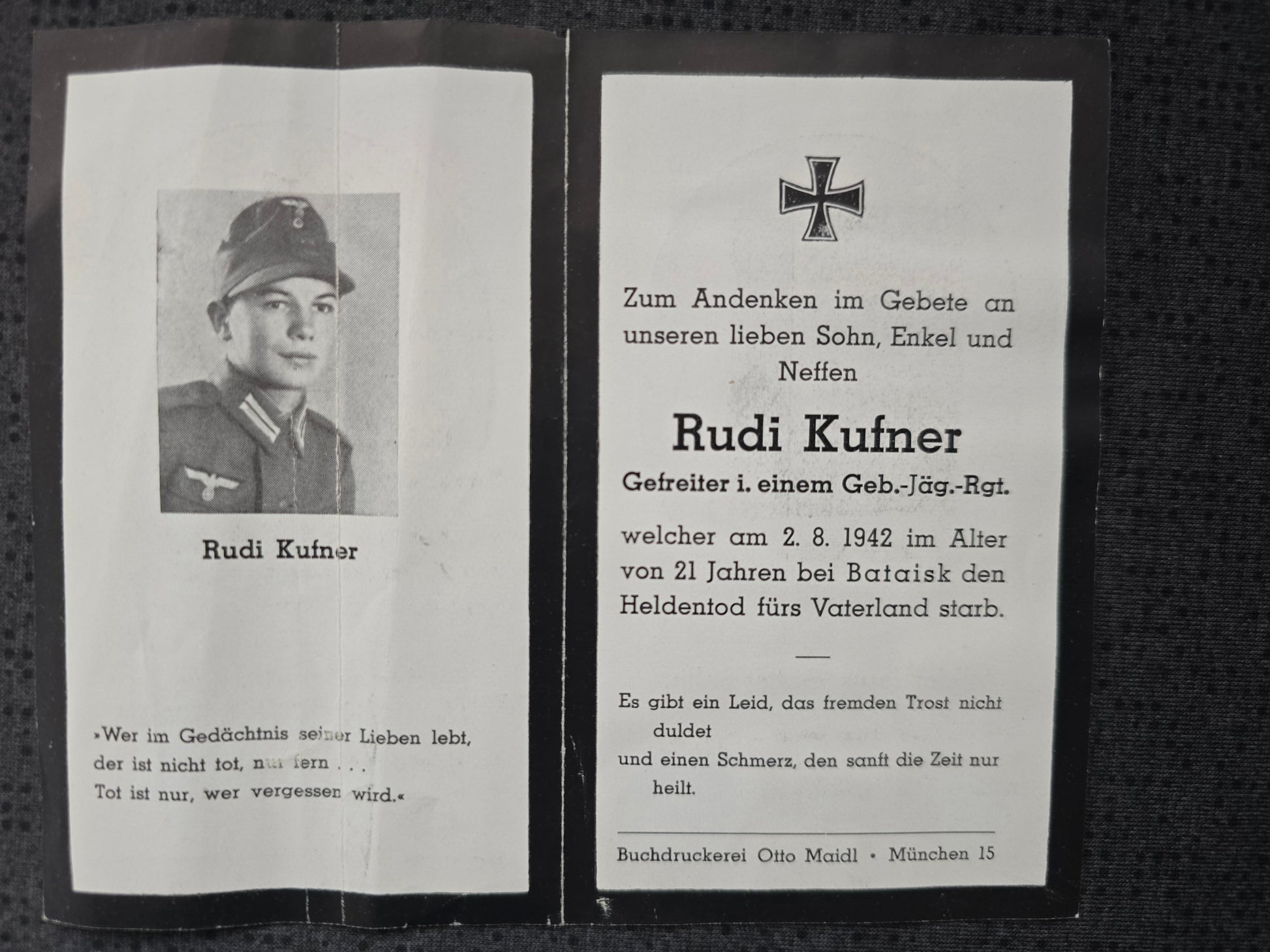 Gefallen am 02.08.1942 bei Bataisk (Russland)