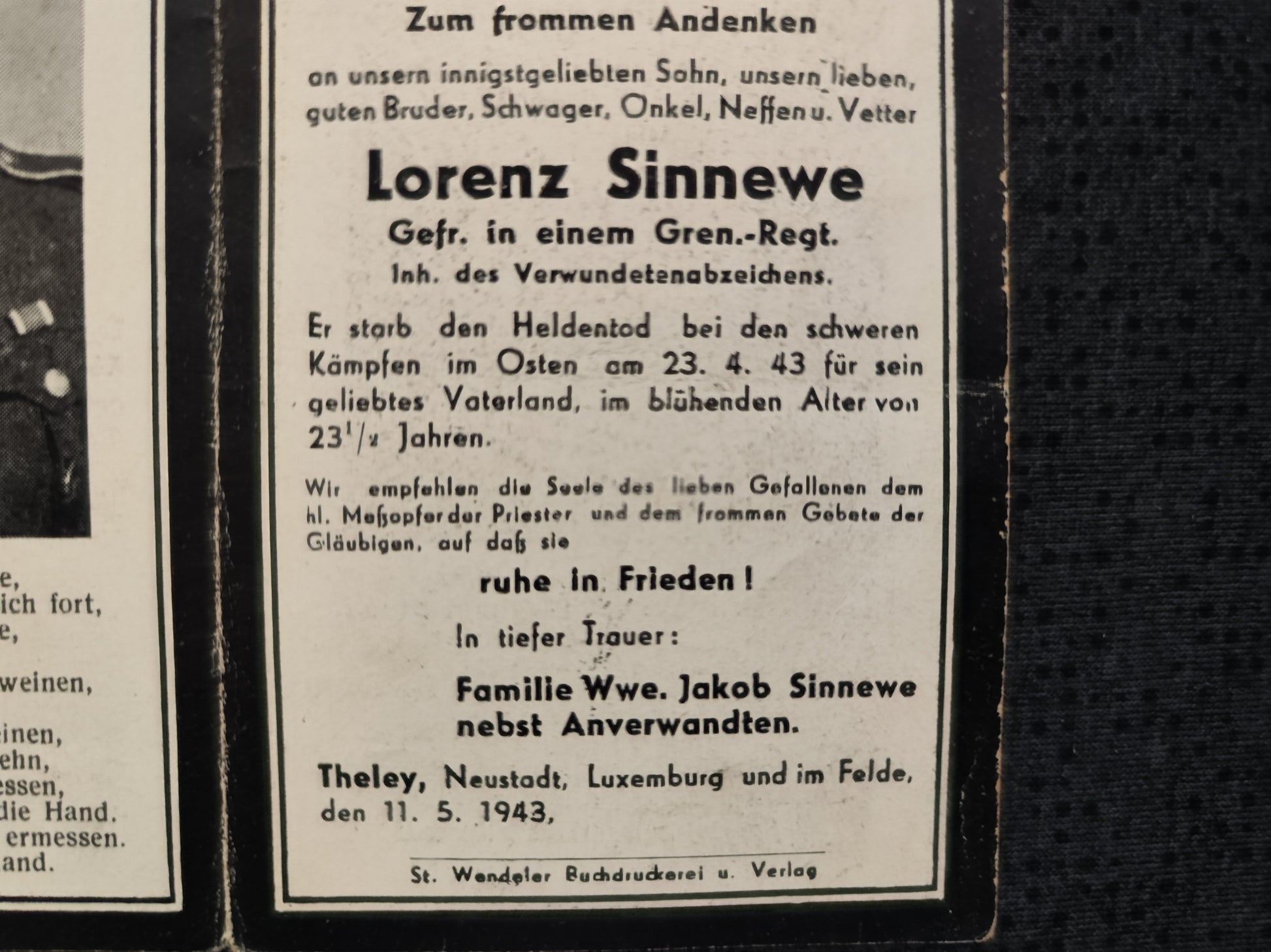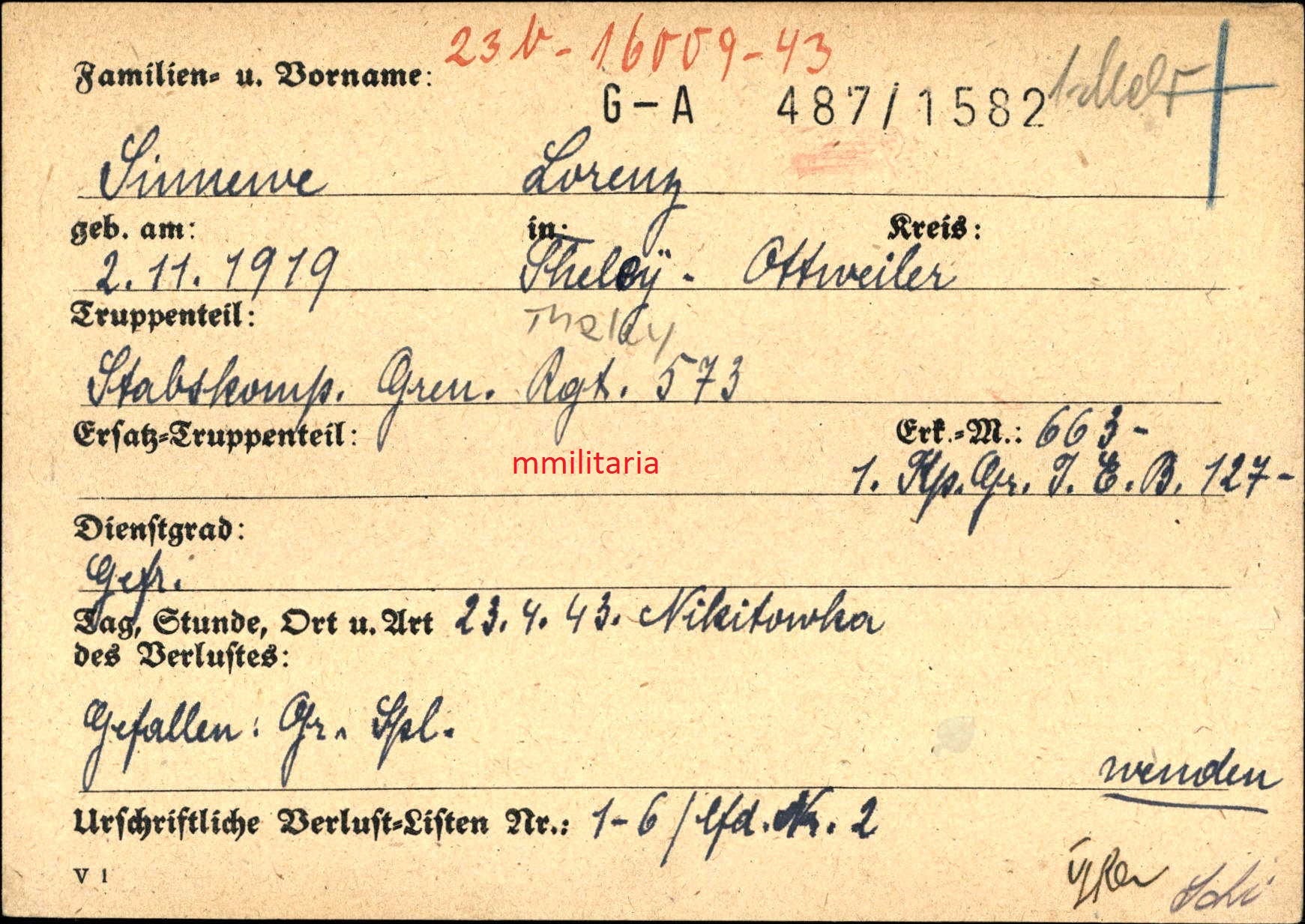 Sterbebild Gefreiter Stabs-Kompanie Gren. Regt. 573 Nikitowka Charkiw Ukraine