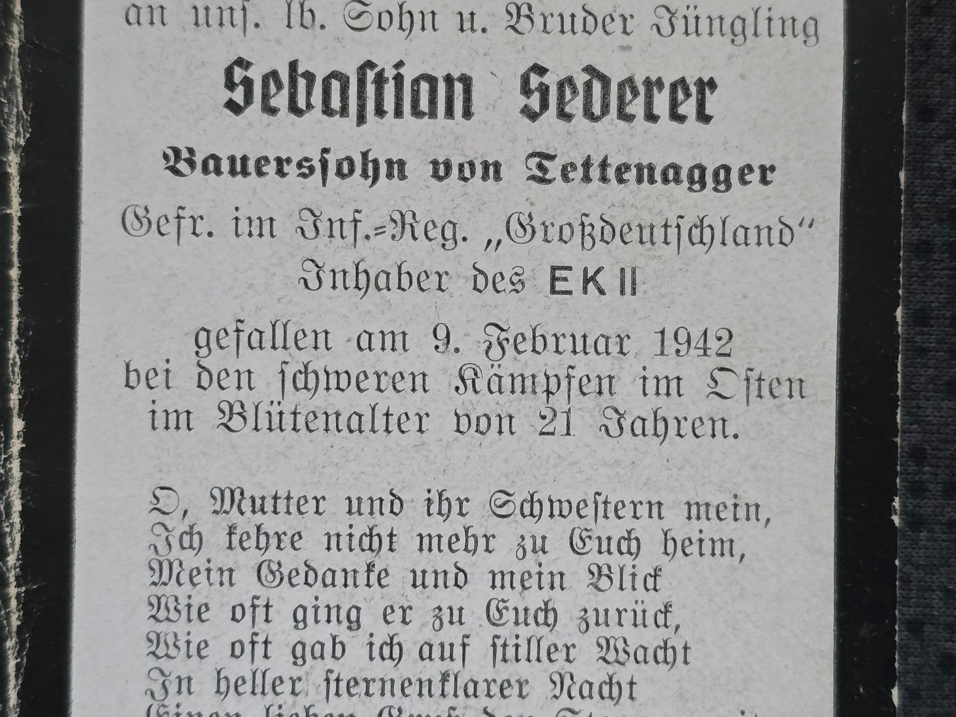 Sterbebild Gefreiter Tettenagger 10. Komp. Inf. Regt. "Großdeutschland" GD Radomske Kursk Russland