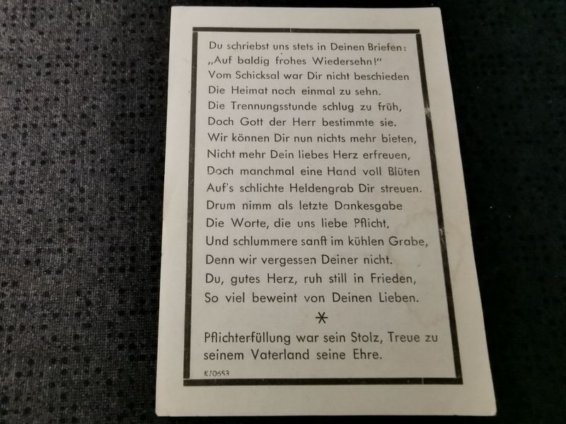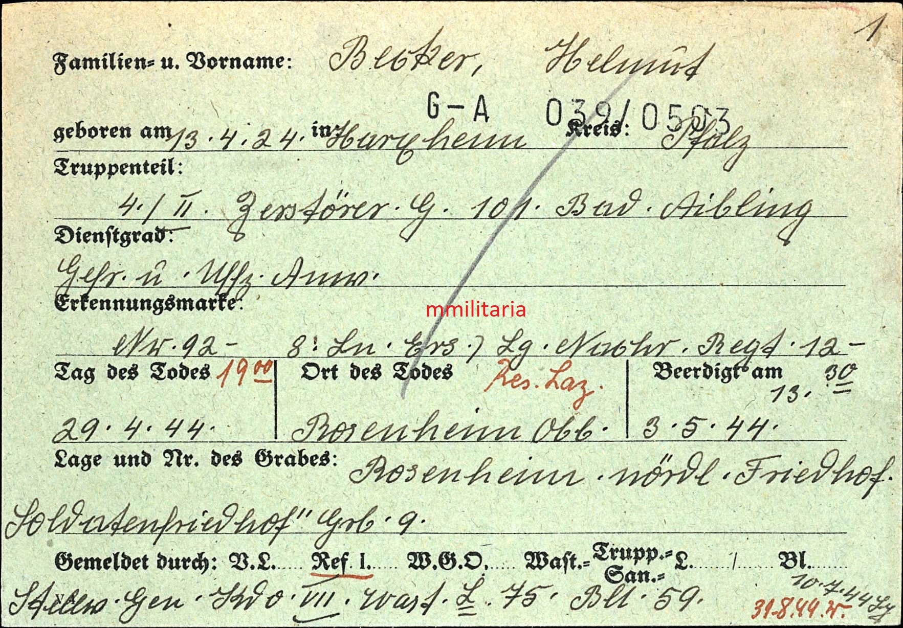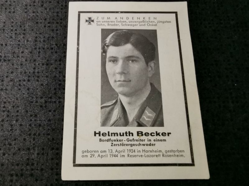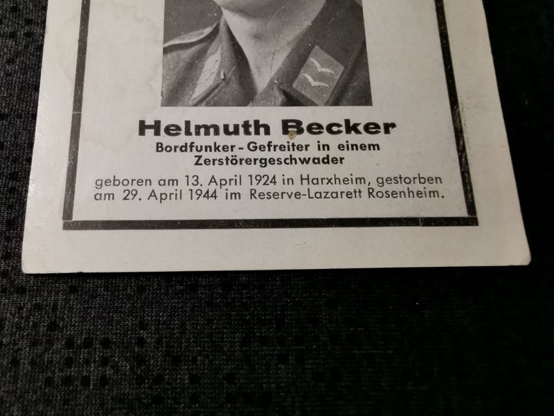 Sterbebild Gefreiter UO-Anwärter 4. Zerstörergeschwader 101 4/ZG-101 Rosenheim Deutschland