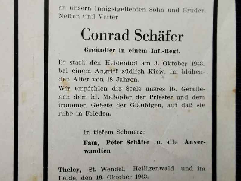 Sterbebild Grenadier 7. Komp. Füsilier Regt. 202 südlich Kiew Ukraine